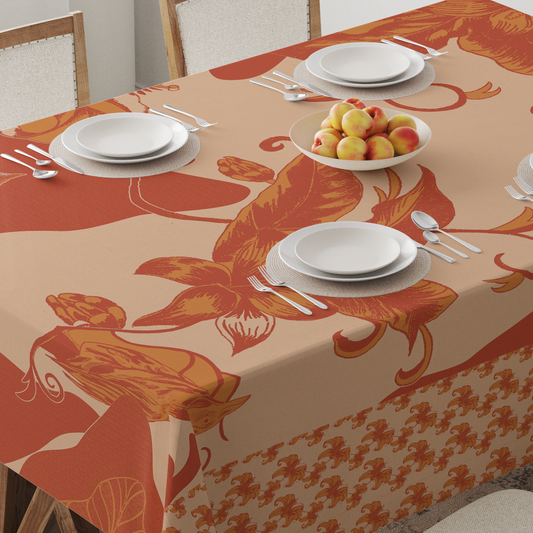 Tropical Paissage Tablecloth in Orange in Mid Cotton Twill