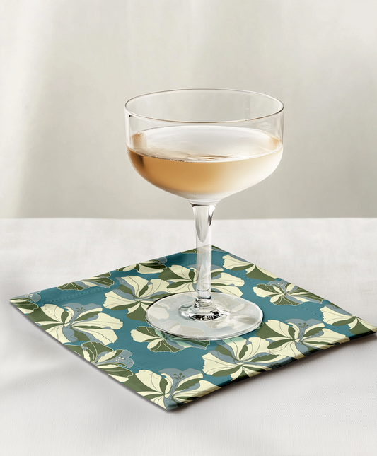 Tropical Cayena Cocktail Napkin in Green in Organic Cotton Voile