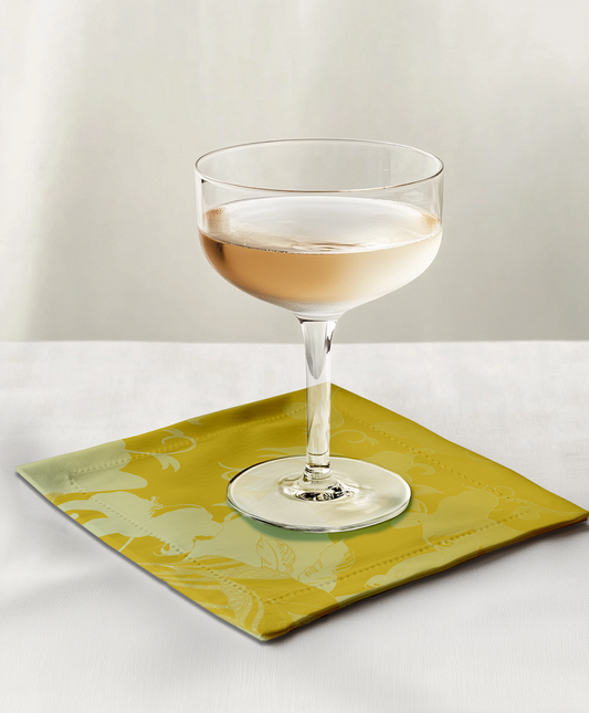 Tropical Paissage Cocktail Napkin in Bright Yellow in Lightweight Linen
