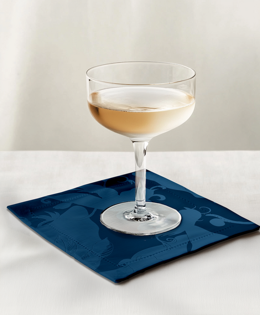 Tropical Paissage Cocktail Napkin in Blue in Lightweight Linen