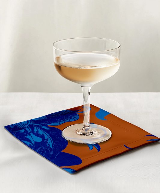 Tropical Paissage Cocktail Napkin in Blue Orange in Lightweight Linen