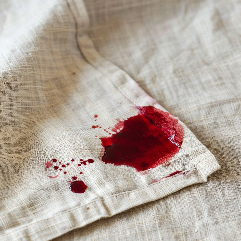Blot the stain and apply a paste of baking soda and water to the stain. Let sit for 5-10 minutes and rinse with cold water.