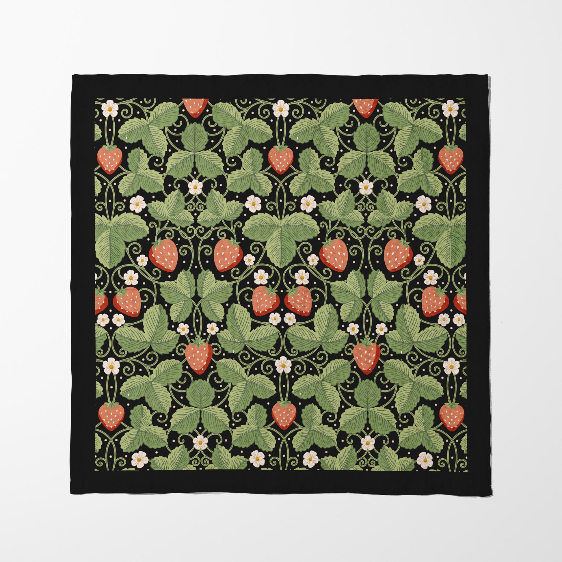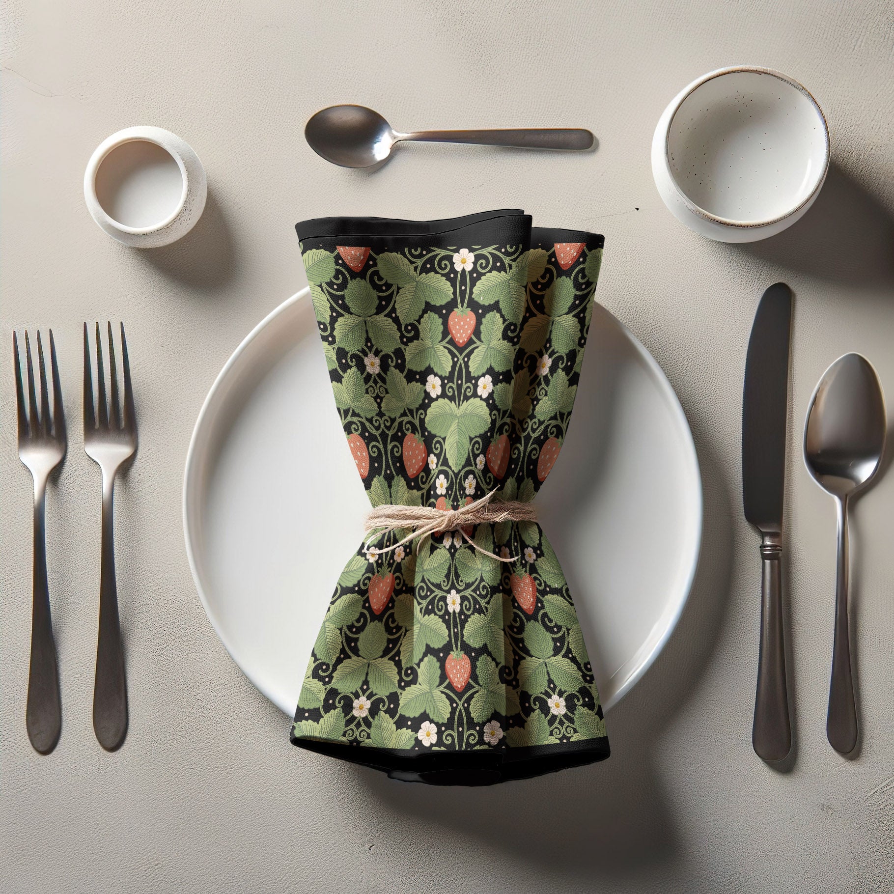 Arts & Crafts Strawberries on Black Napkin in Organic Cotton Voile