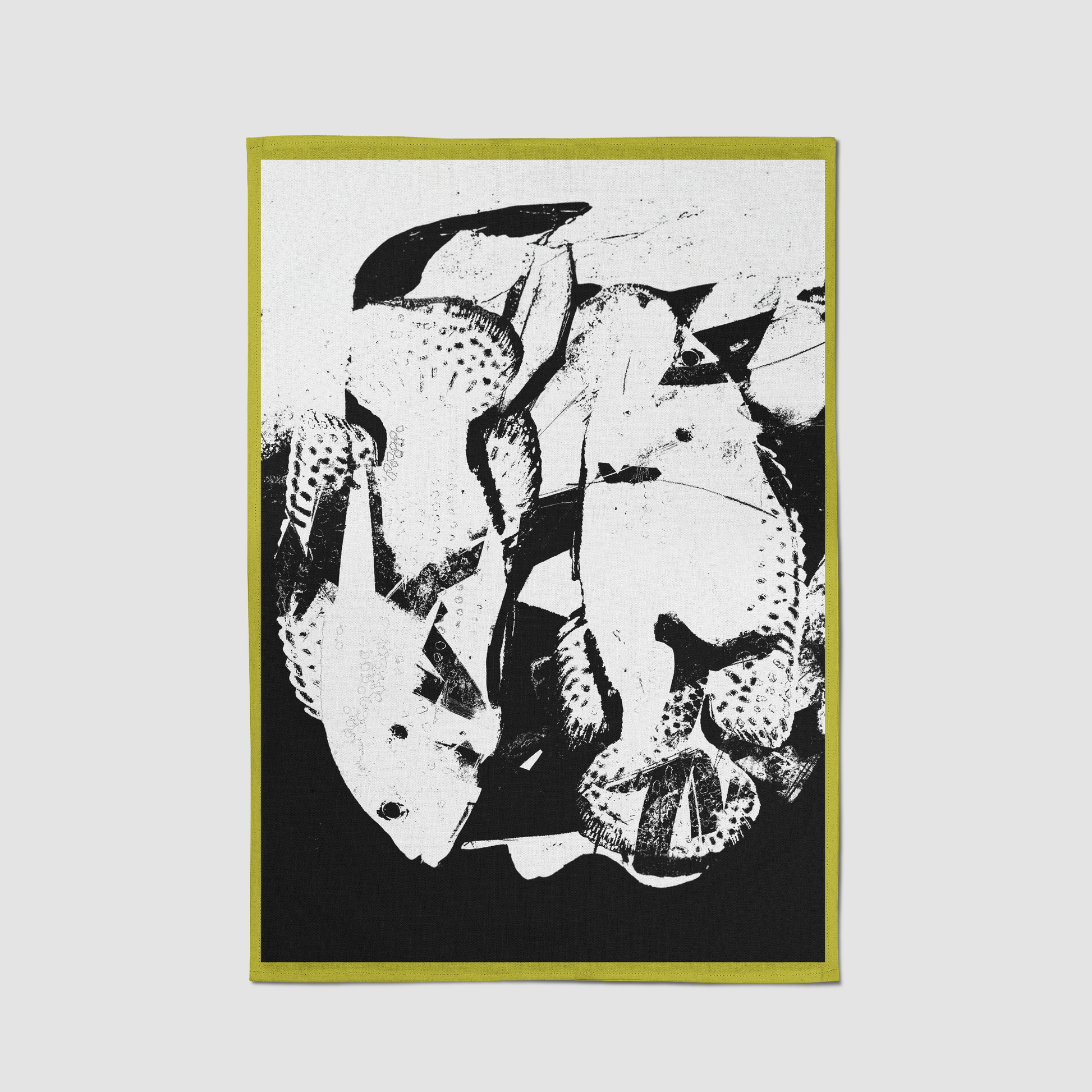 Black and White Fish Tea Towel in Mid-Weight Cotton Twill