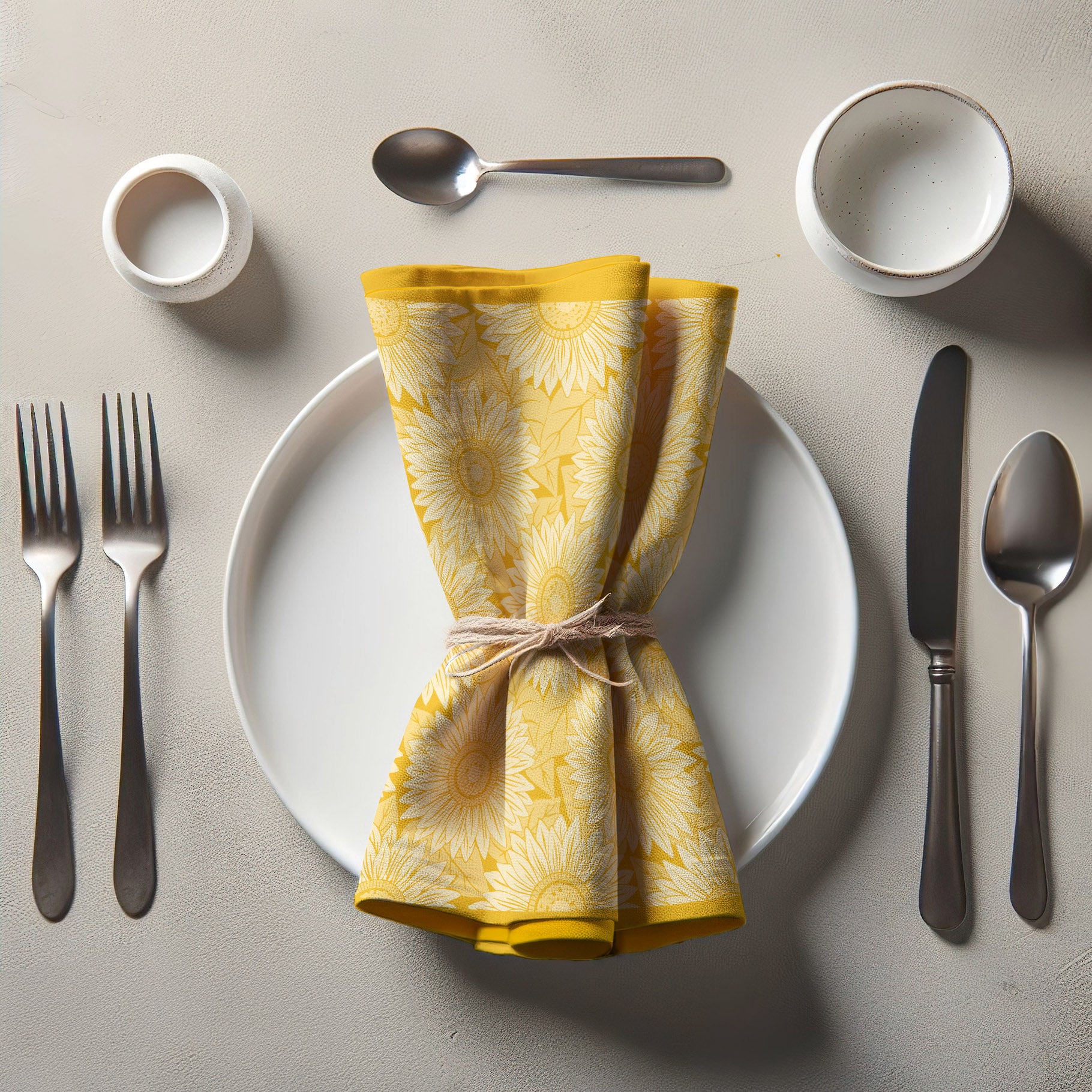 Subtle Sunflowers Napkin in Organic Cotton Voile