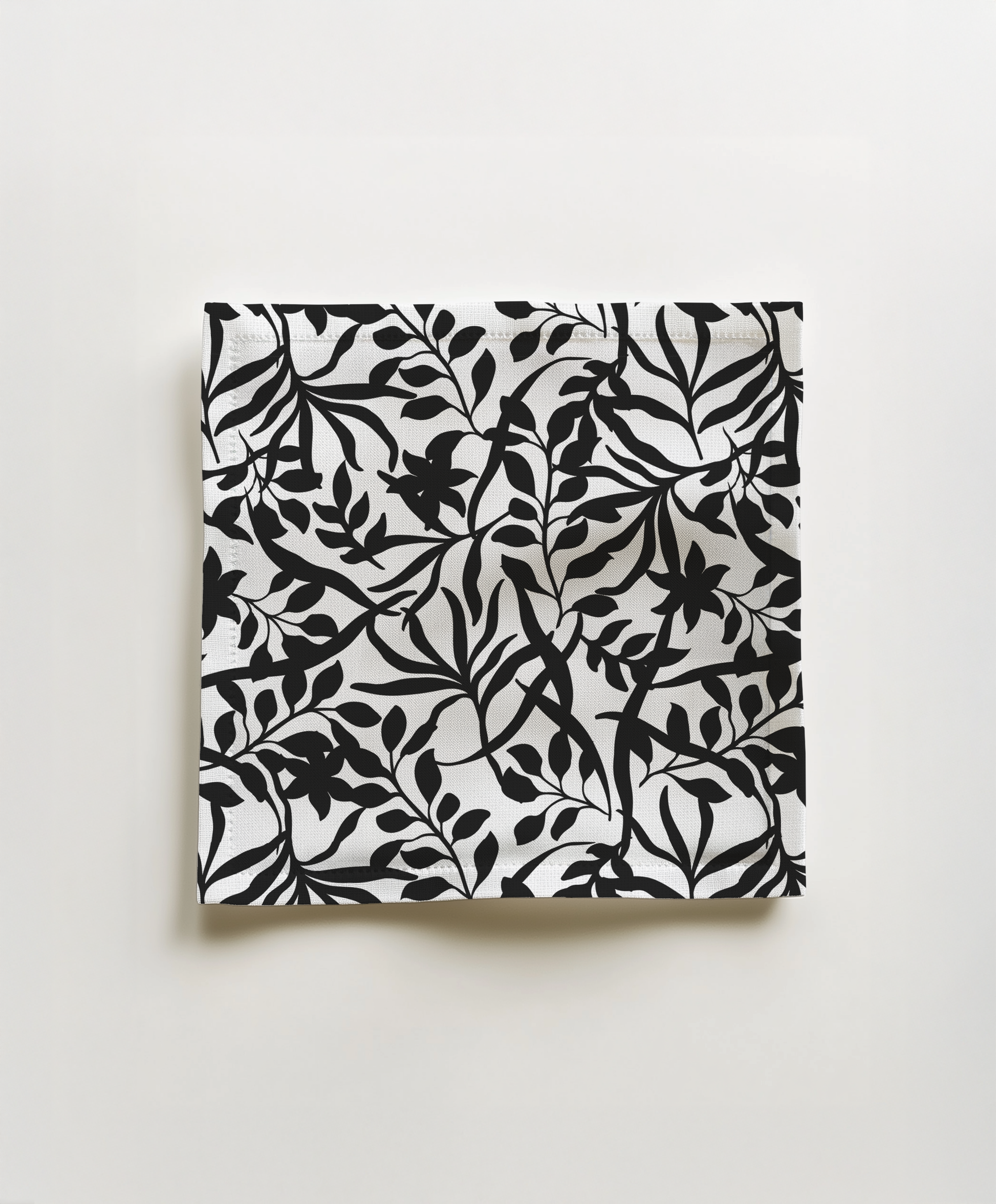 Figi Floral Cocktail Napkin in Black and White - Linen - 45%