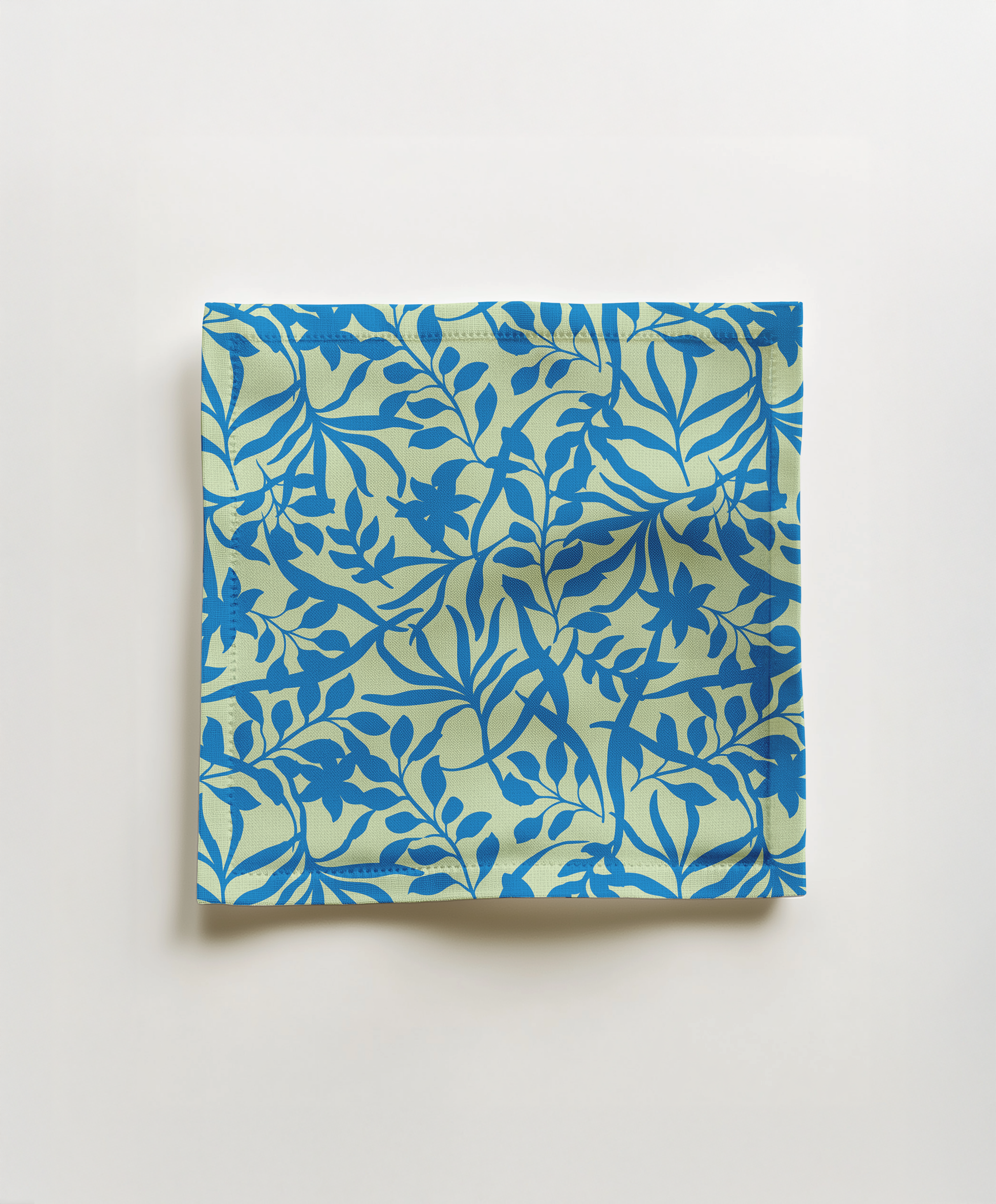 Figi Floral Cocktail Napkin in Cerulean Lime - Organic Cotton Voile