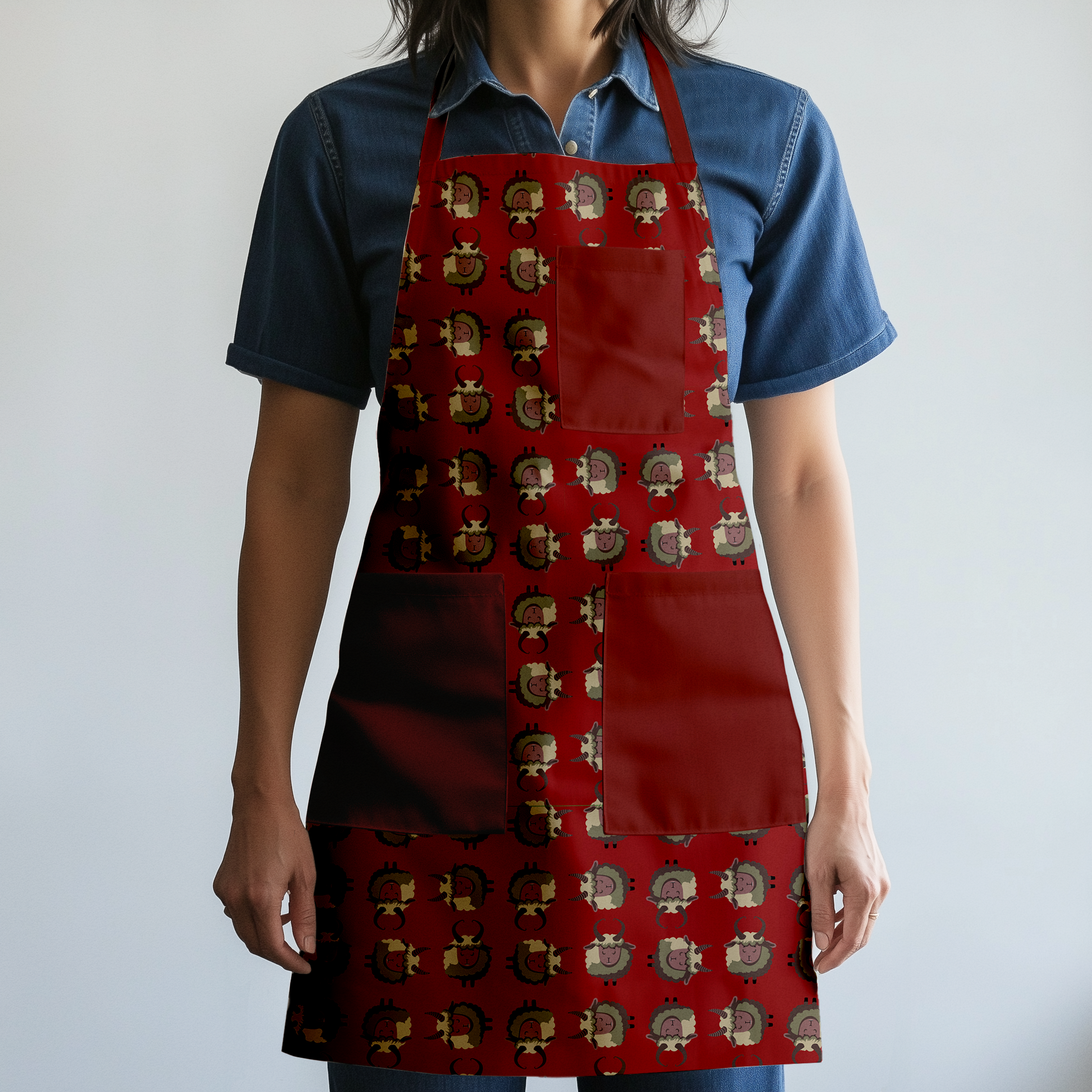 35" x 36" body, 43" waist straps, up to 28" neck strap with button closure at neck