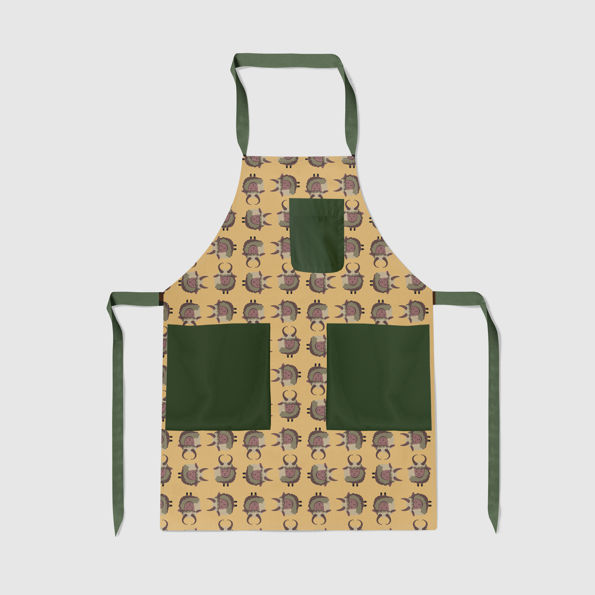 Krampus Full Chef Apron in Gold with Dark Green