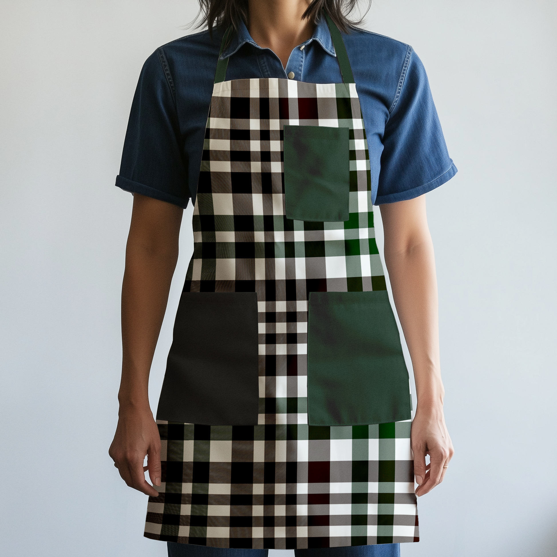 35" x 36" body, 43" waist straps, up to 28" neck strap with button closure at neck
