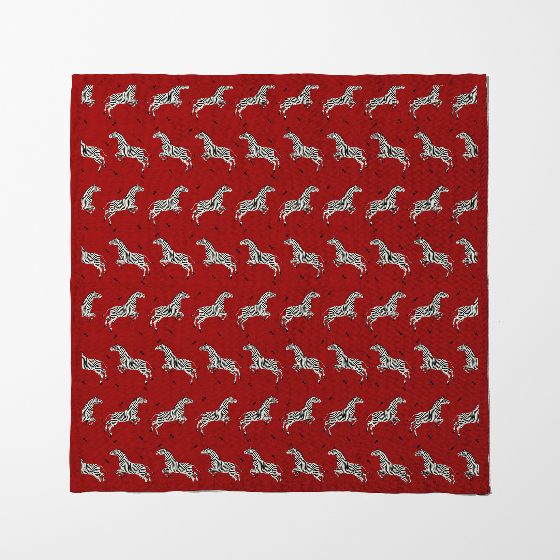Leaping Zebras Napkin in Deep Red in Organic Cotton Voile