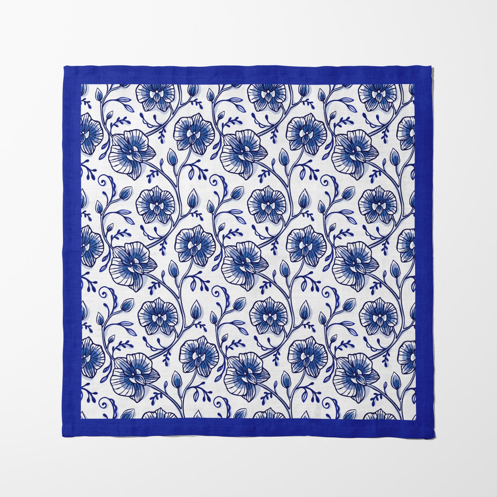 Delft Blue Orchids Napkin in Lightweight Linen