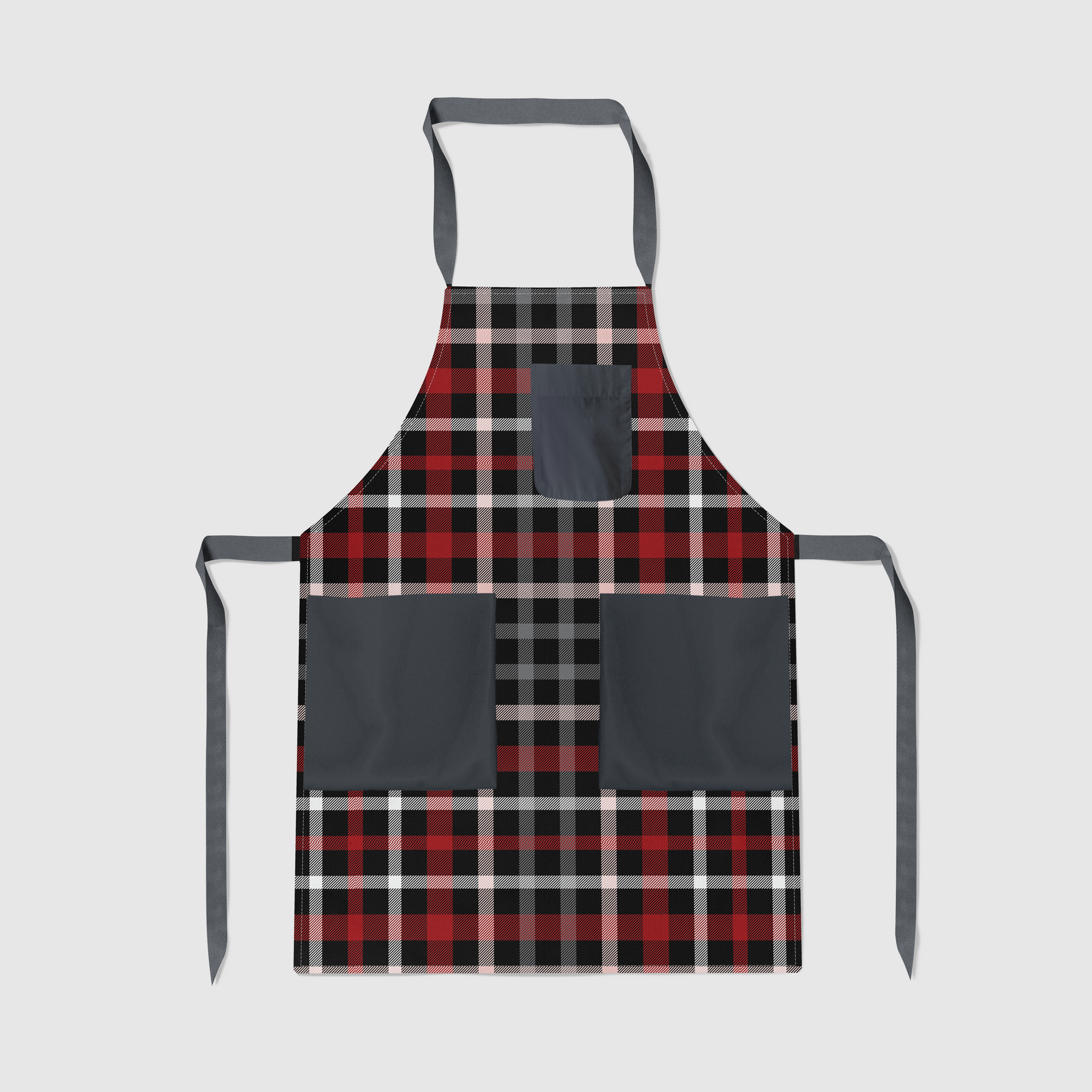 35" x 36" body, 43" waist straps, up to 28" neck strap with button closure at neck