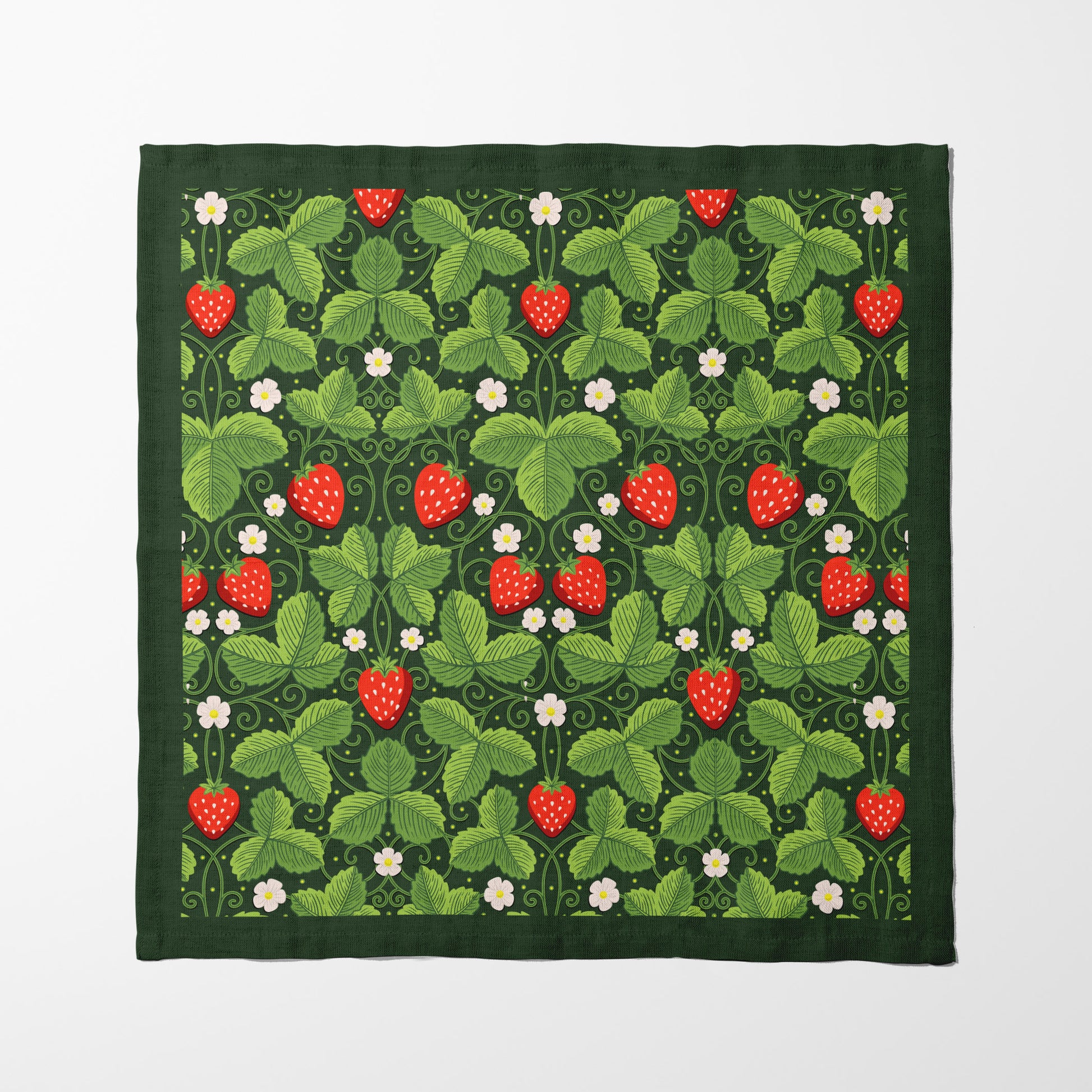 Arts & Crafts Strawberries in Green Napkin in Organic Cotton Voile