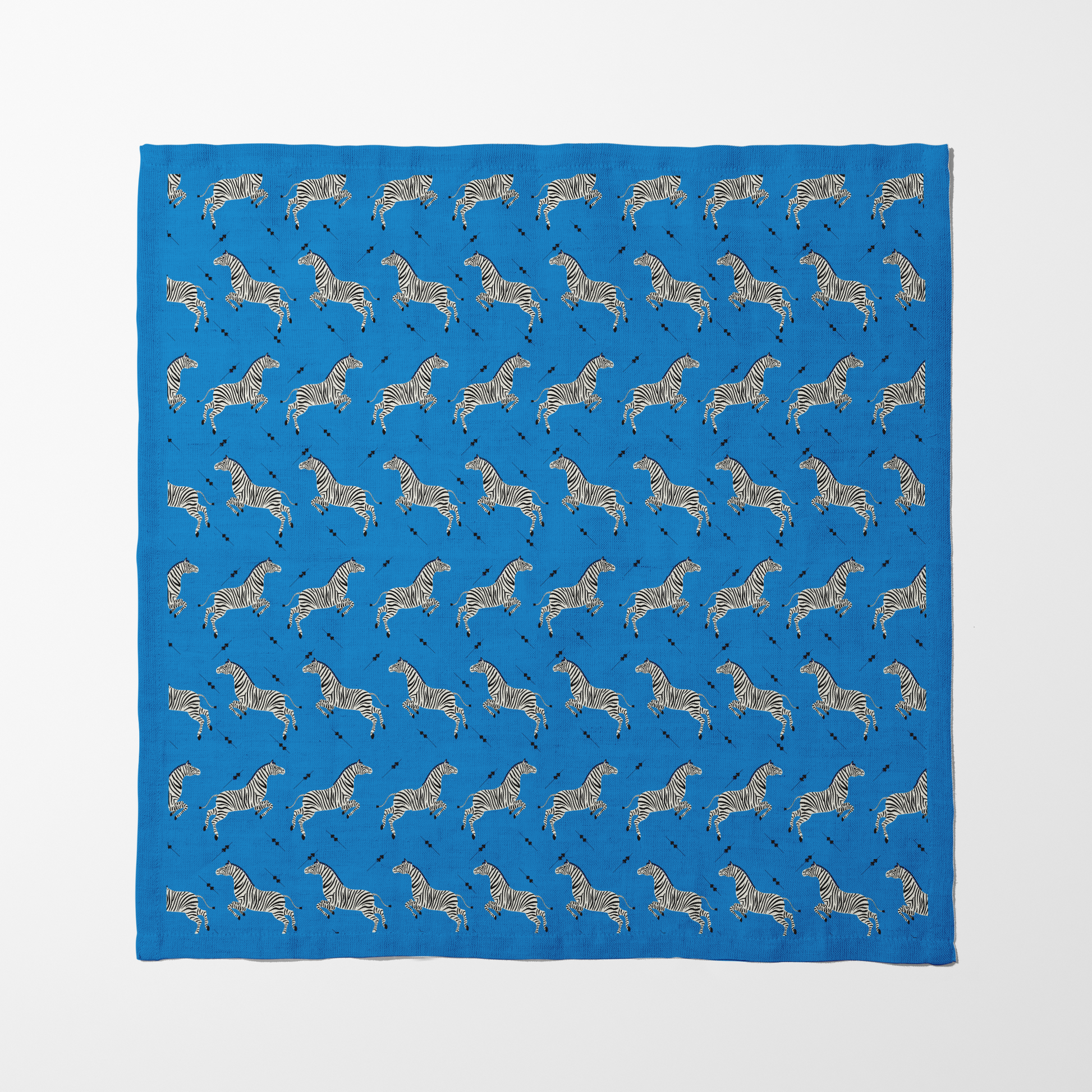Leaping Zebras Napkin in Cerulean Blue - Organic Cotton Voile