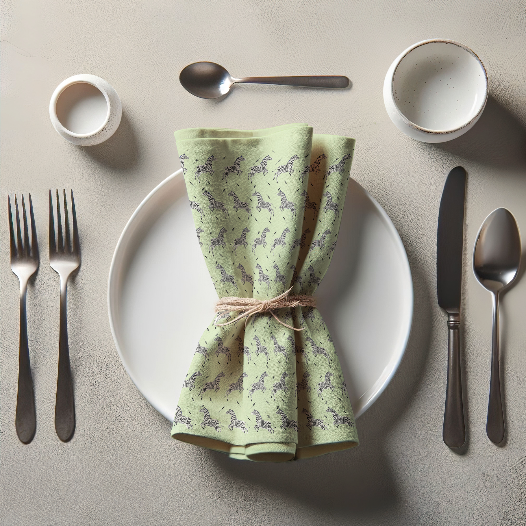 Leaping Zebras Napkin in Lime Cream - Organic Cotton Voile