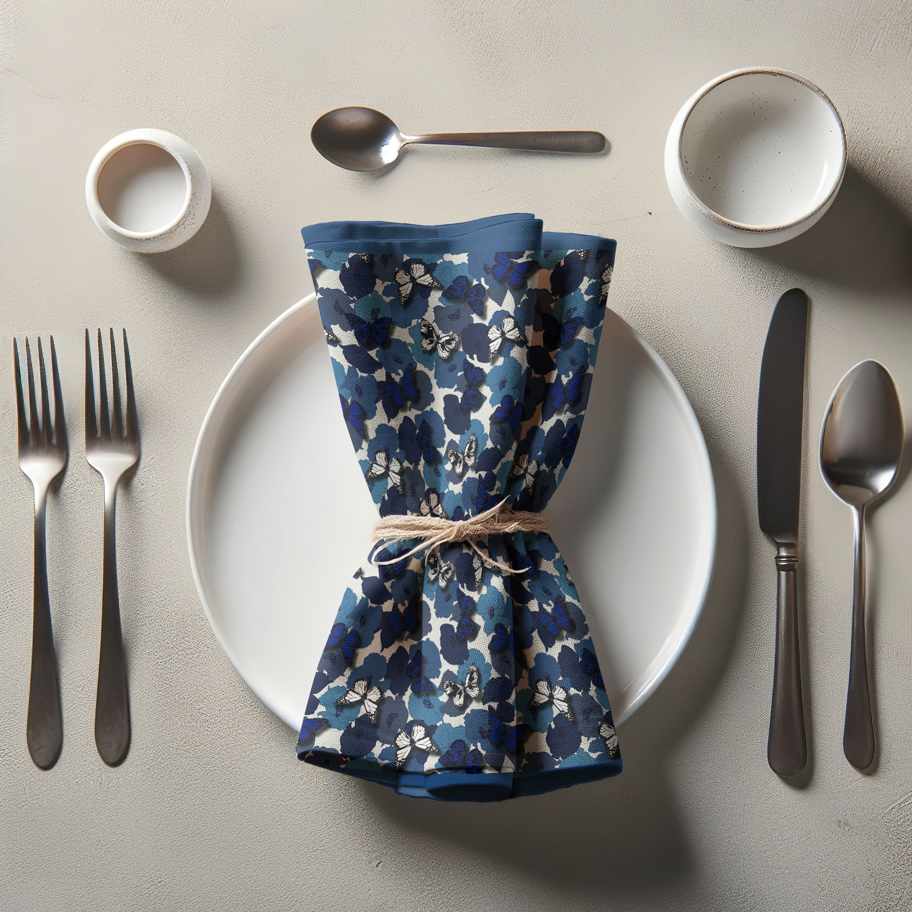 Listening Butterflies Napkin in Blue in Lightweight Linen