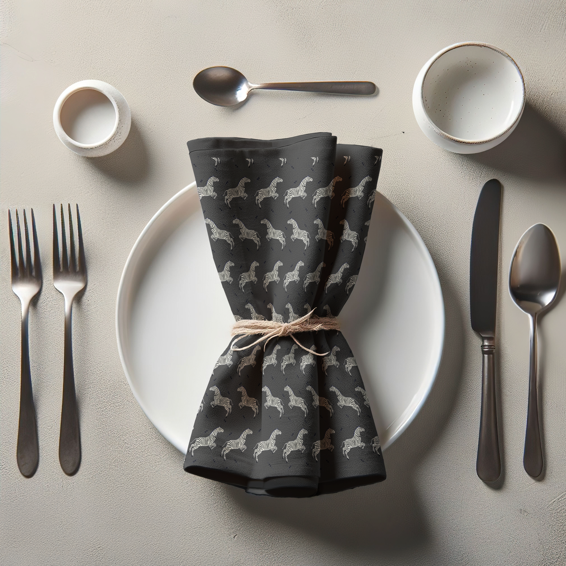 Leaping Zebras Napkin in Dark Grey in Lightweight Linen