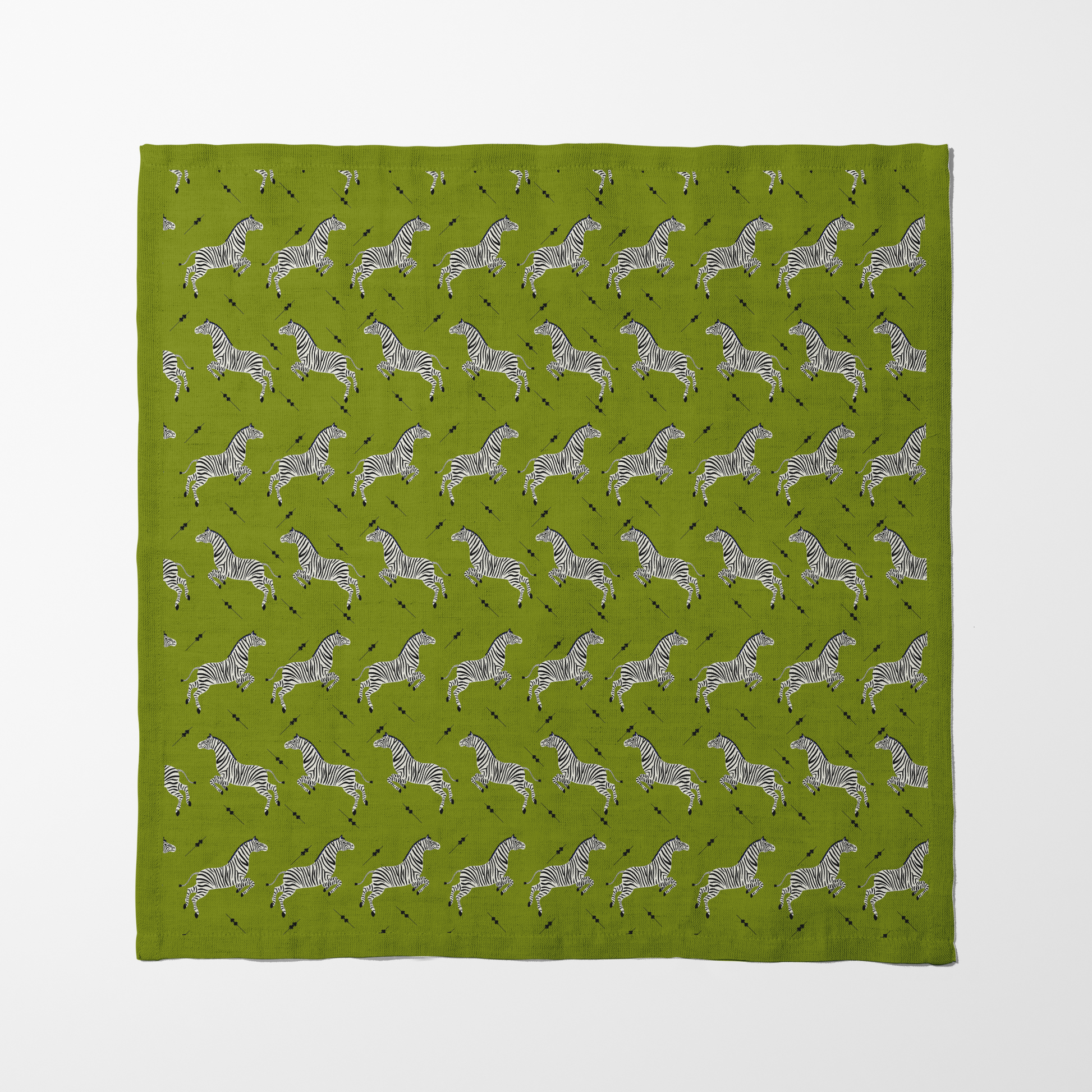 Leaping Zebras Napkin in Green in Lightweight Linen
