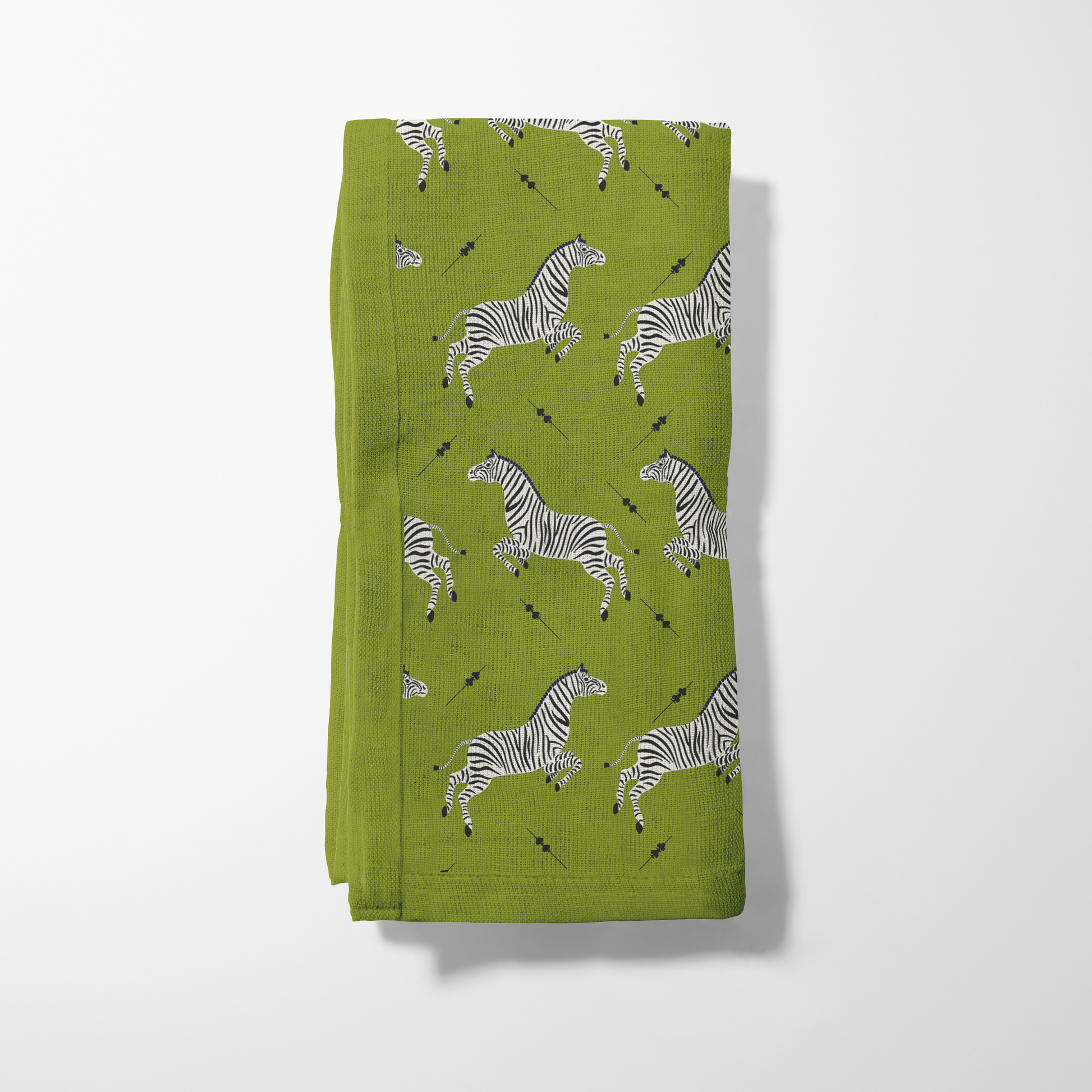 Leaping Zebras Napkin in Green in Organic Cotton Voile