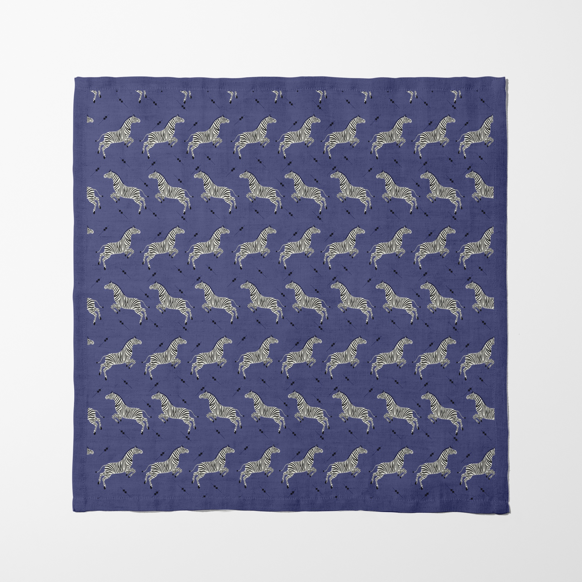 Leaping Zebras Napkin in Midnight in Lightweight Linen