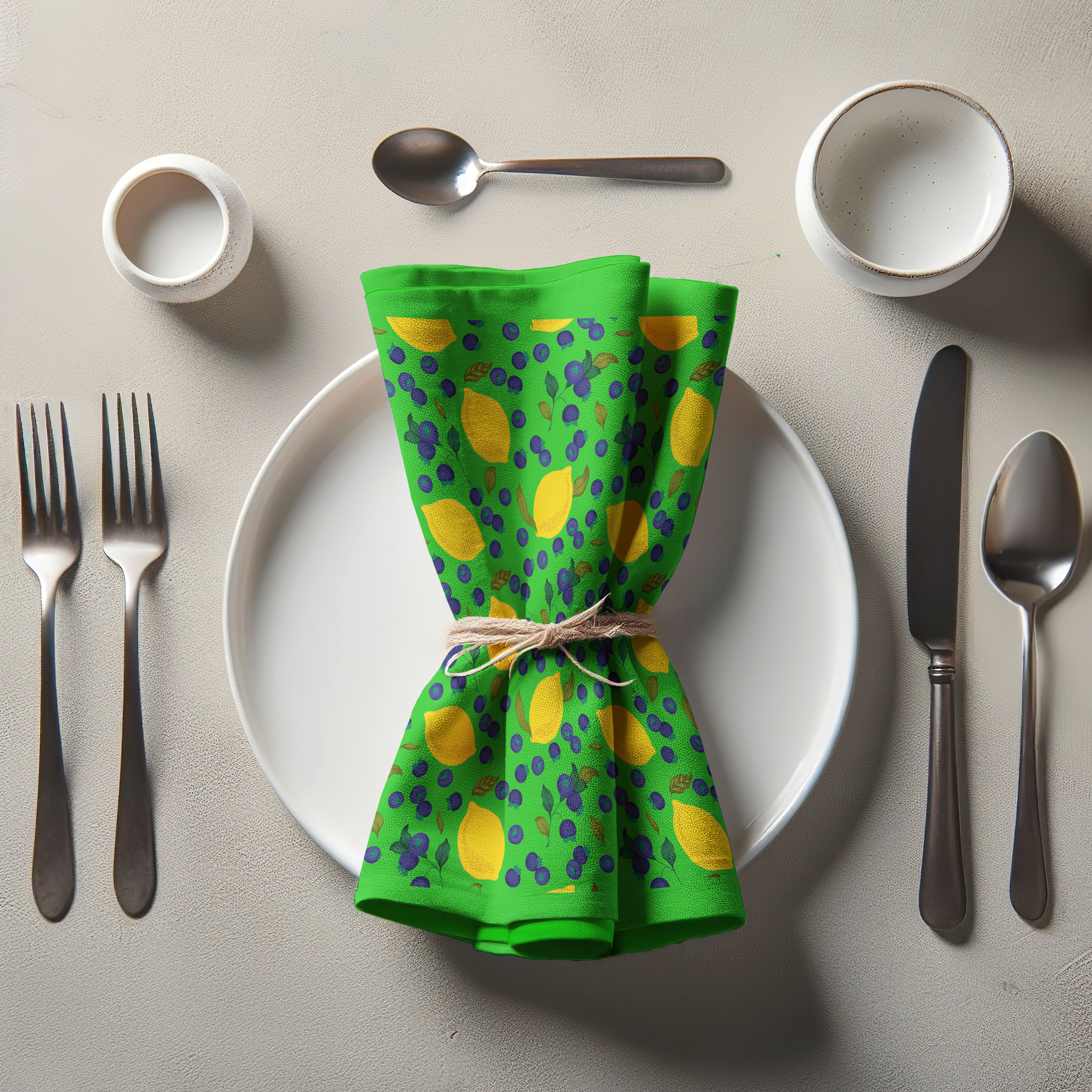 Spring Lemons Napkin in Bright Green in Organic Cotton Voile