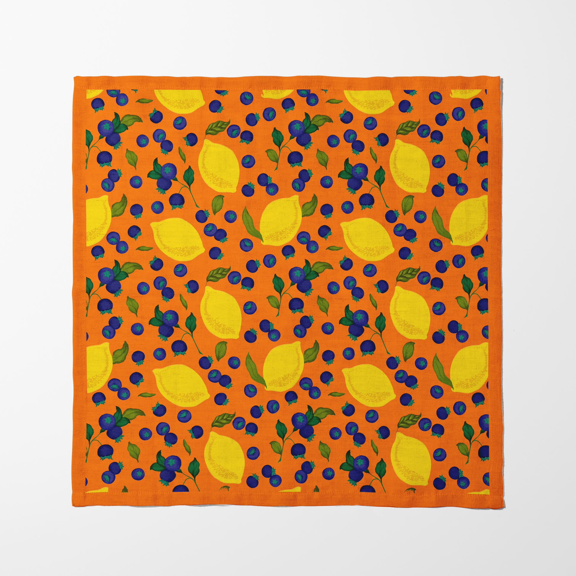 Spring Lemons Napkin in Orange in Lightweight Linen