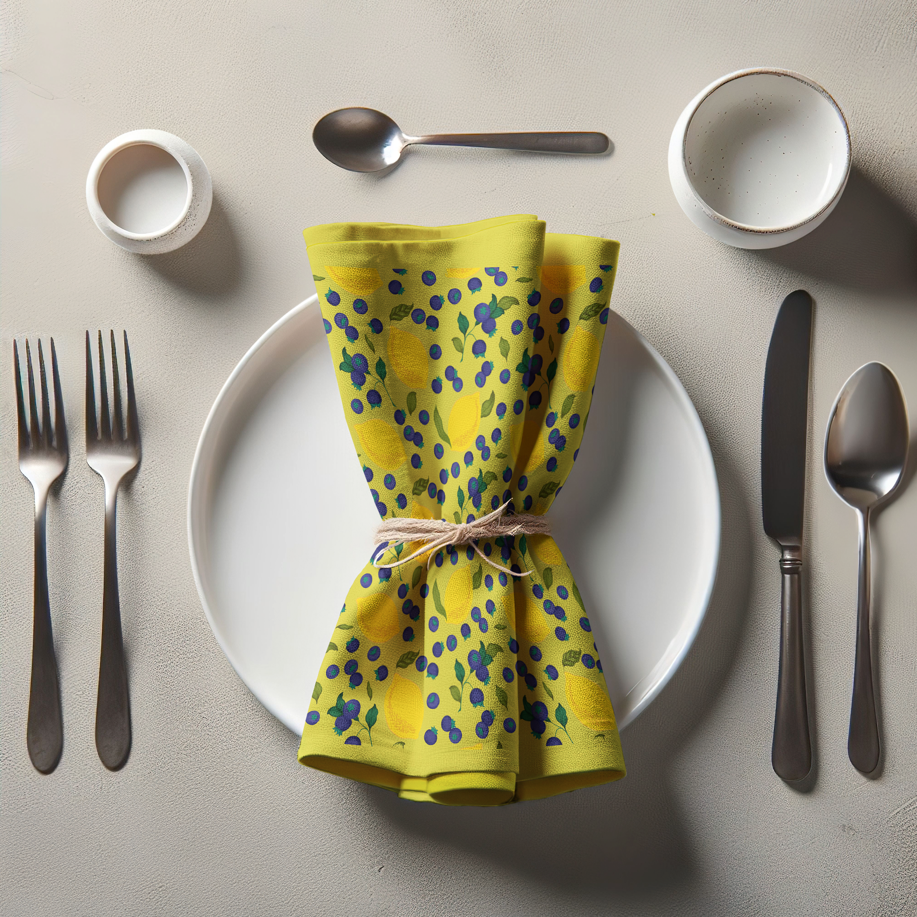 Spring Lemons Napkin in Yellow in Organic Cotton Voile