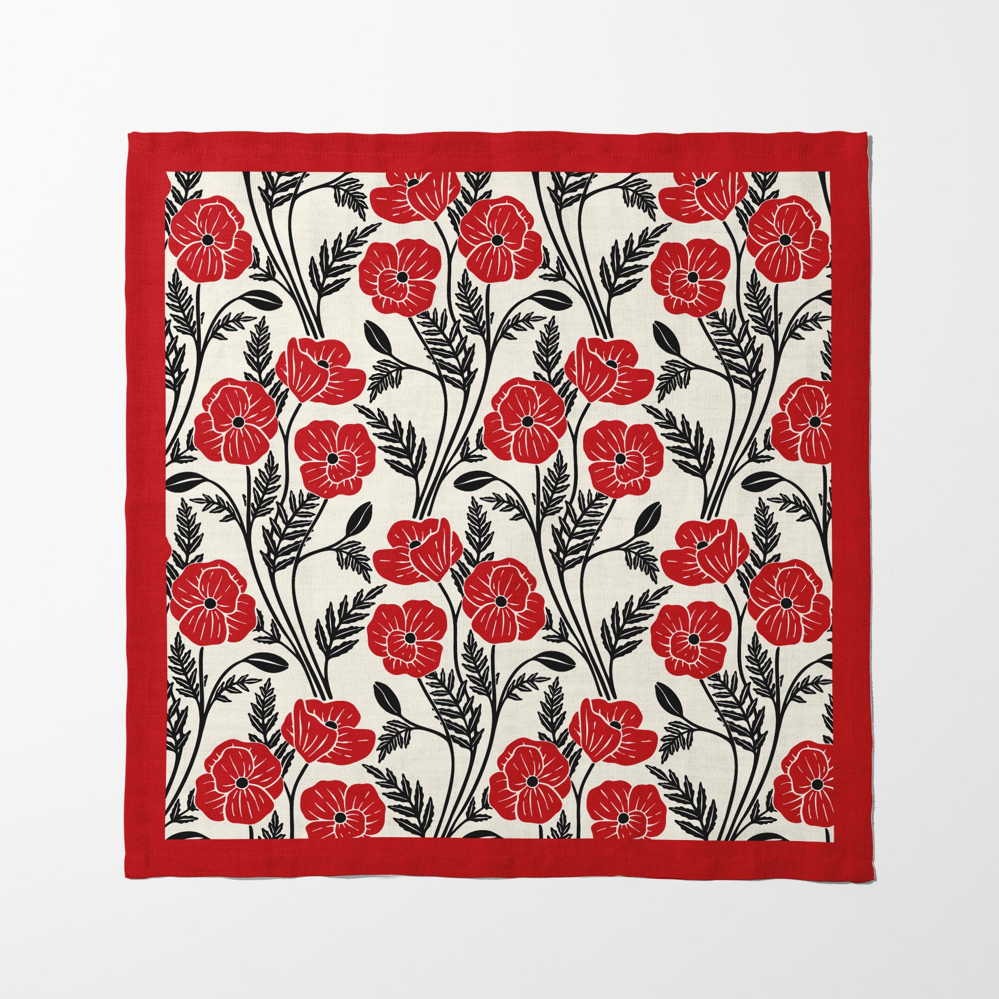 Flowing Poppies in Red Napkin in Organic Cotton Voile