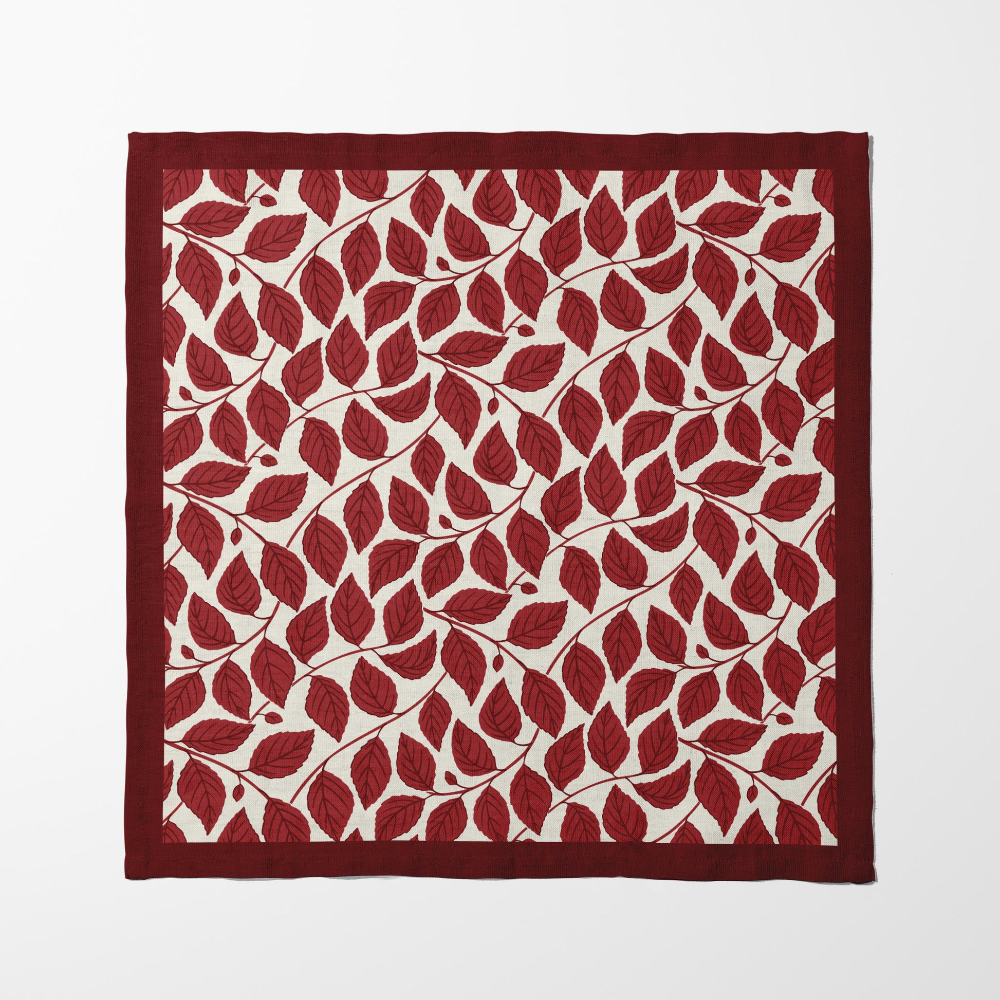 Bowing Birch Leaves in Crimson & Cream Napkin in Organic Cotton Voile