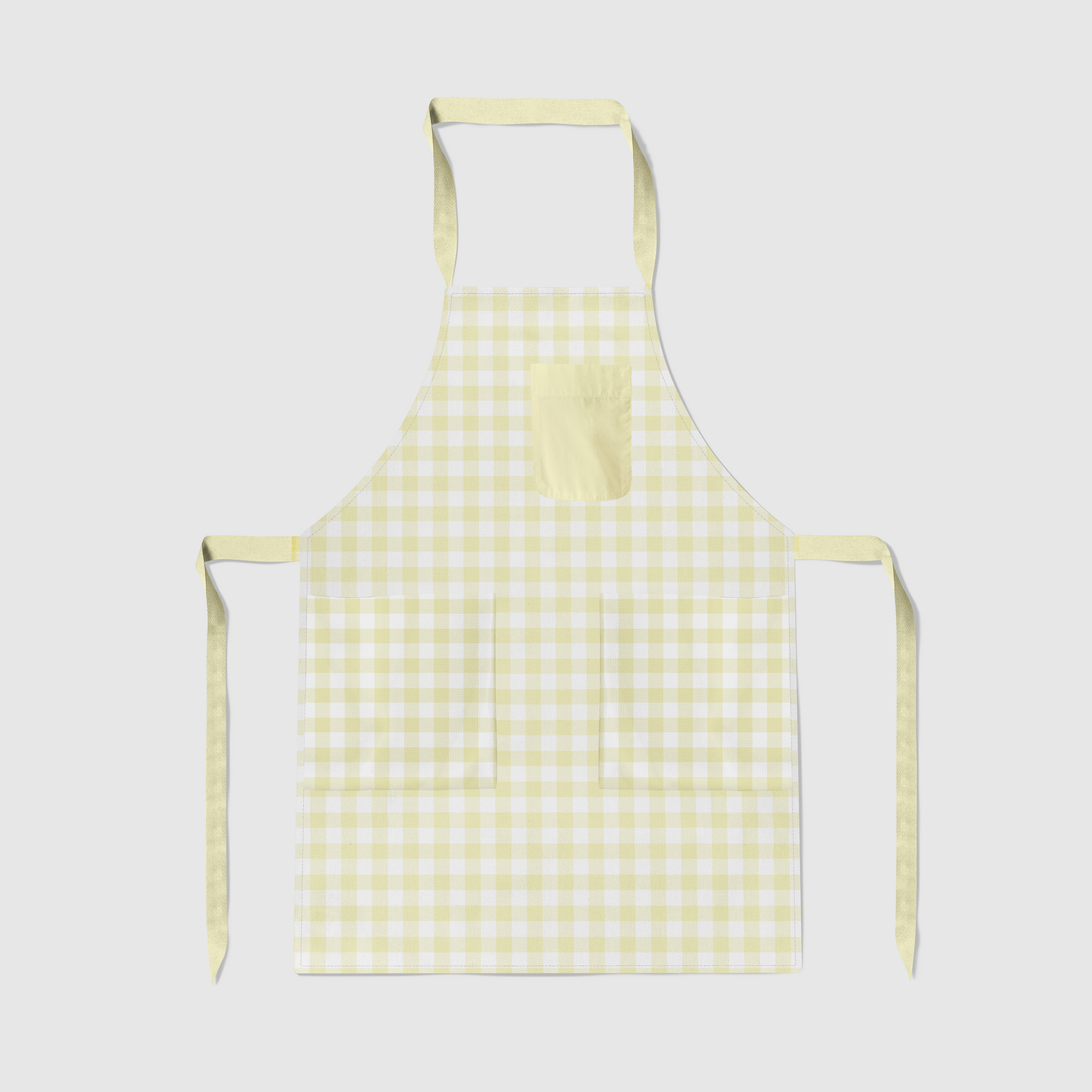 Mini Gingham Full Chef Apron in Pastel Yellow in Mid Weight Cotton Twill