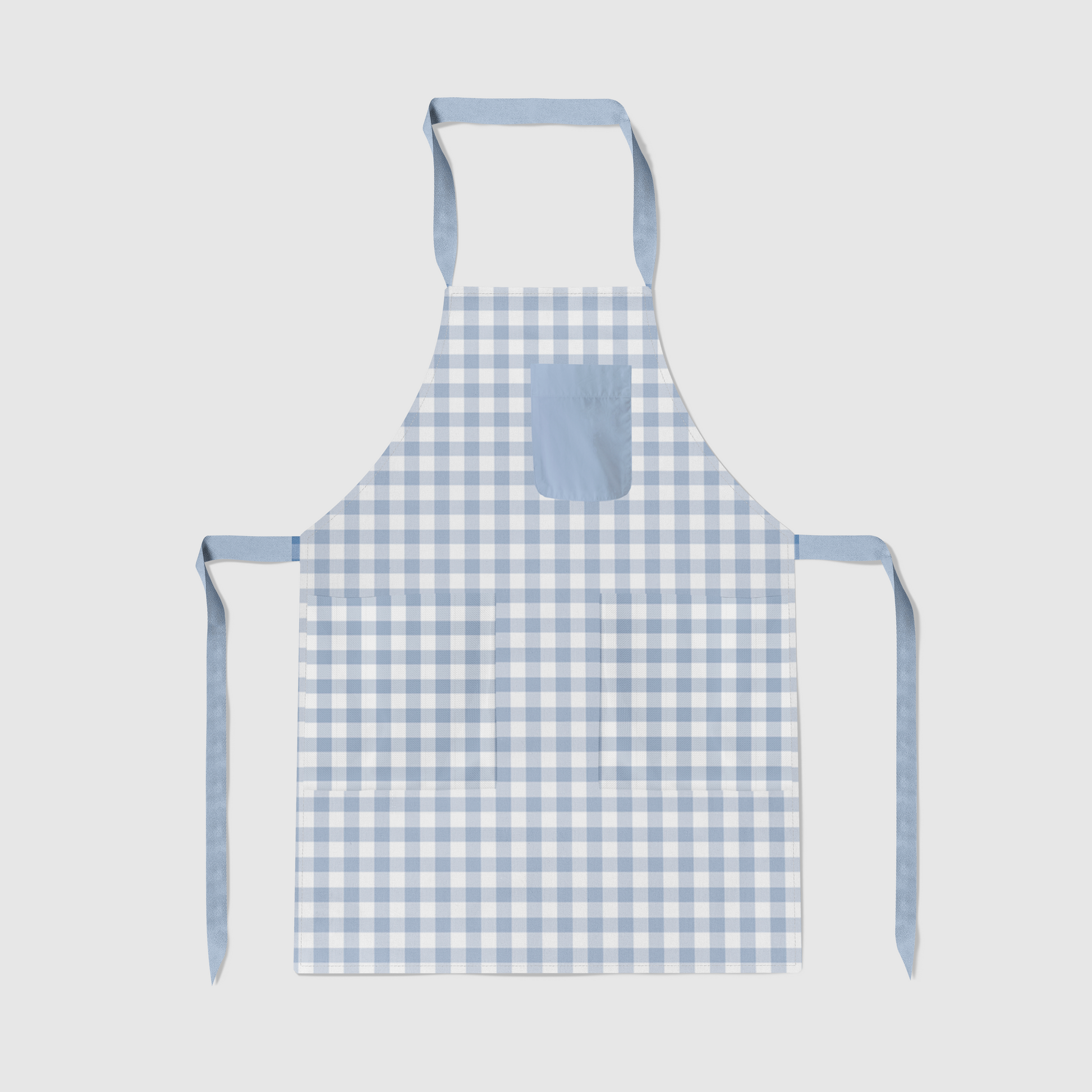 Mini Gingham Full Chef Apron in Pastel Blue in Mid Weight Cotton Twill