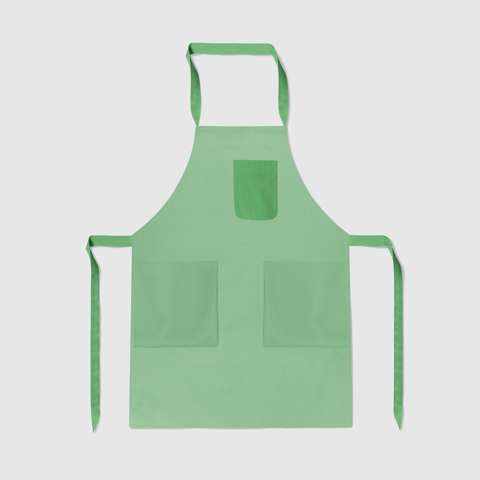 Solid Full Chef Apron in Light Green with Sage Pocket