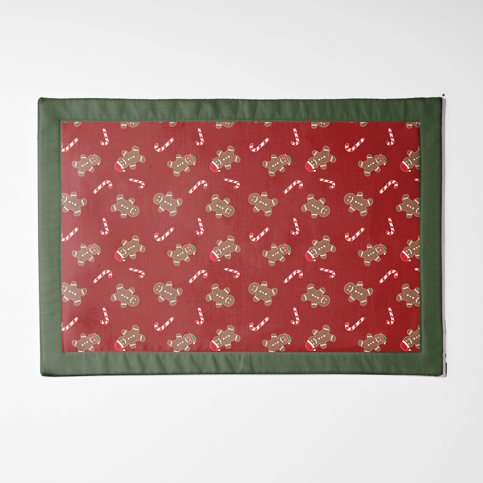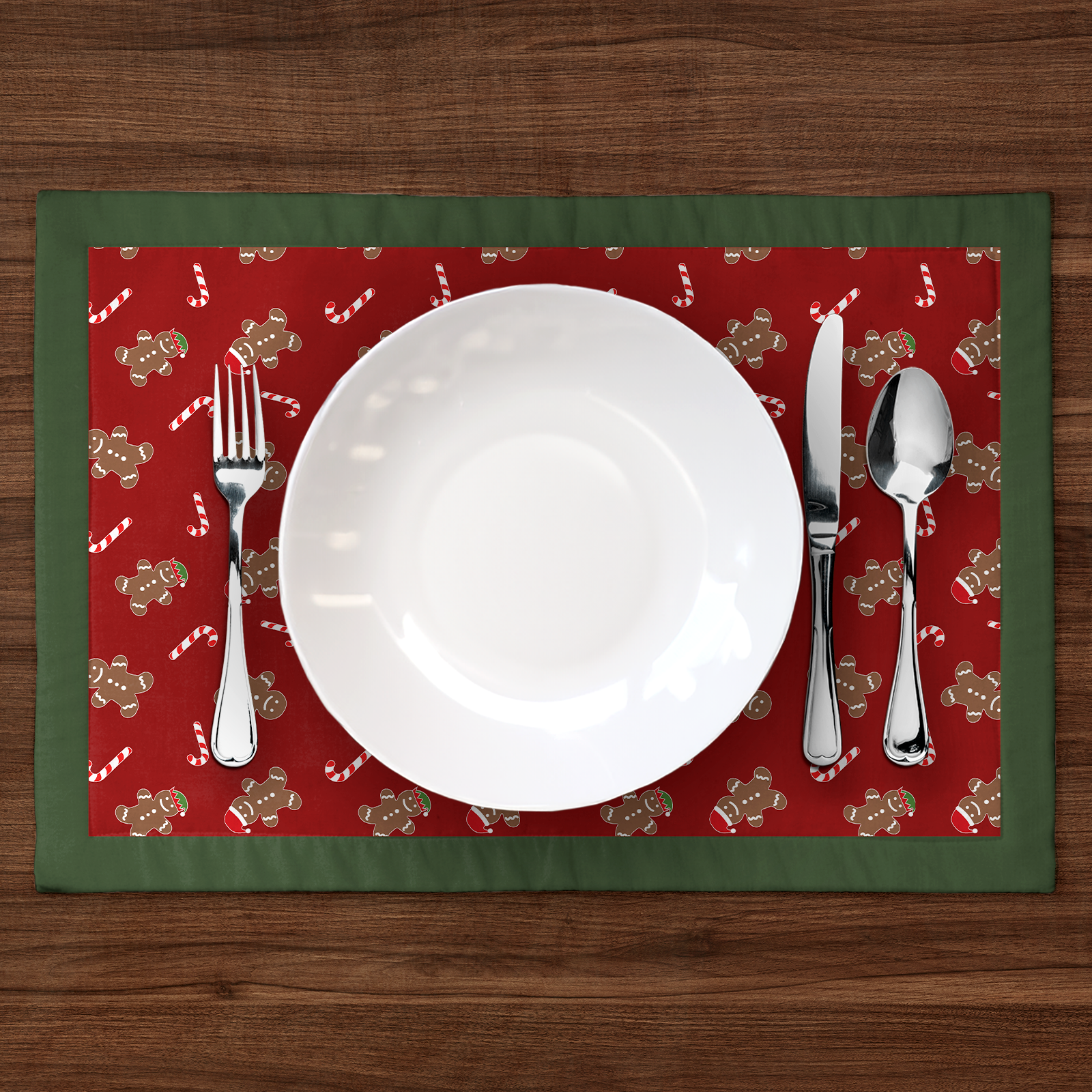 Gingerbread Dudes Placemat in Dark Red with Dark Green Border