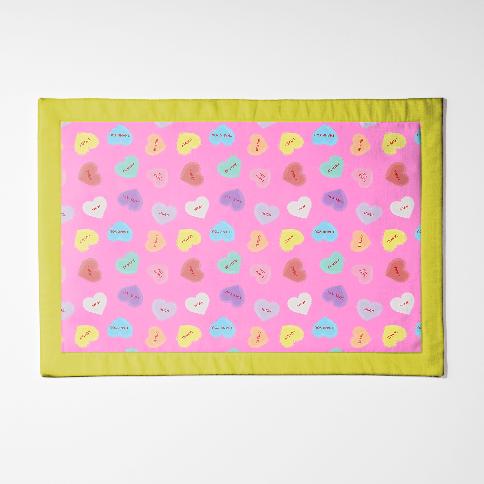 Love Pink Candy Hearts with Laughter Yellow Placemat