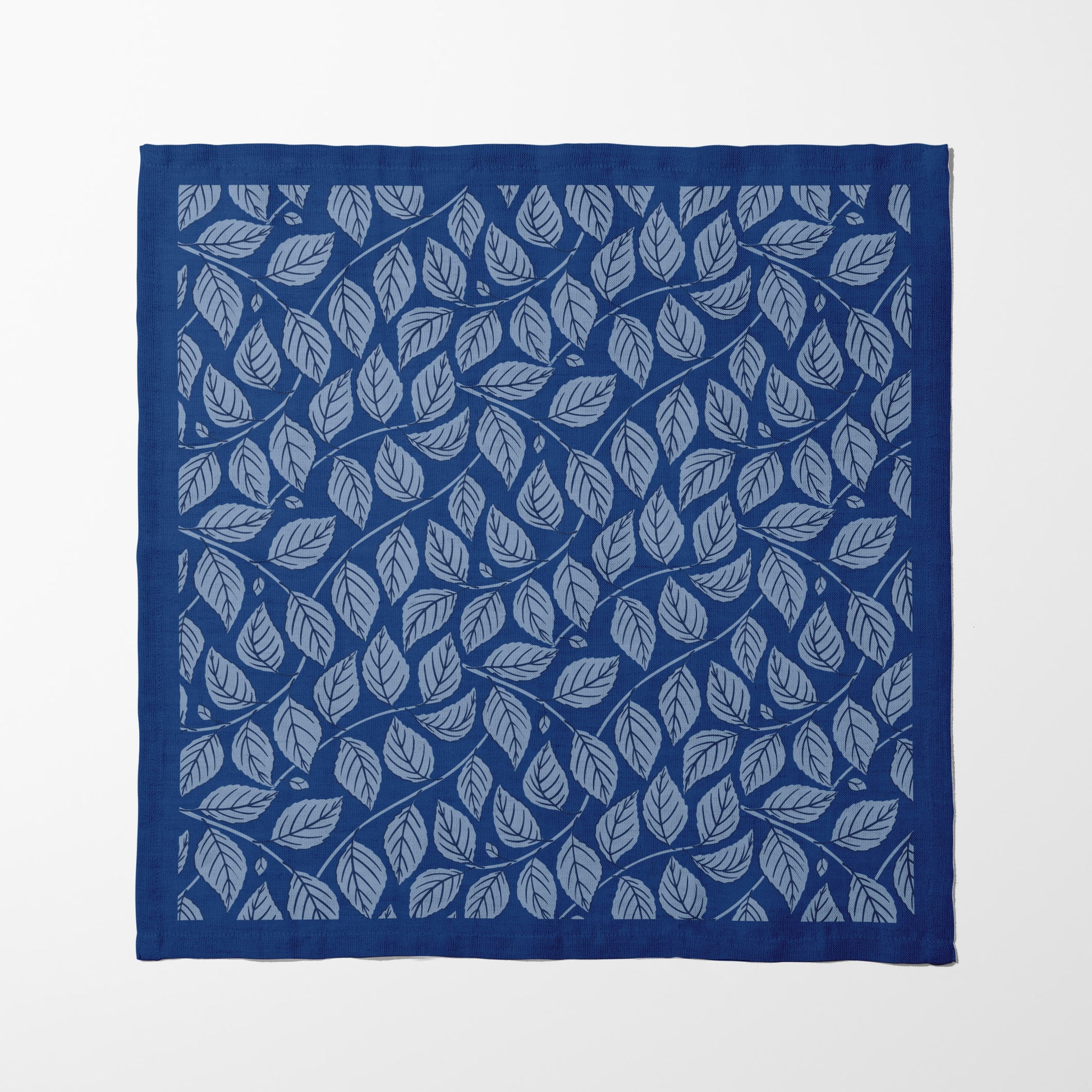 Bowing Birch Leaves in Blue Napkin in Organic Cotton Voile