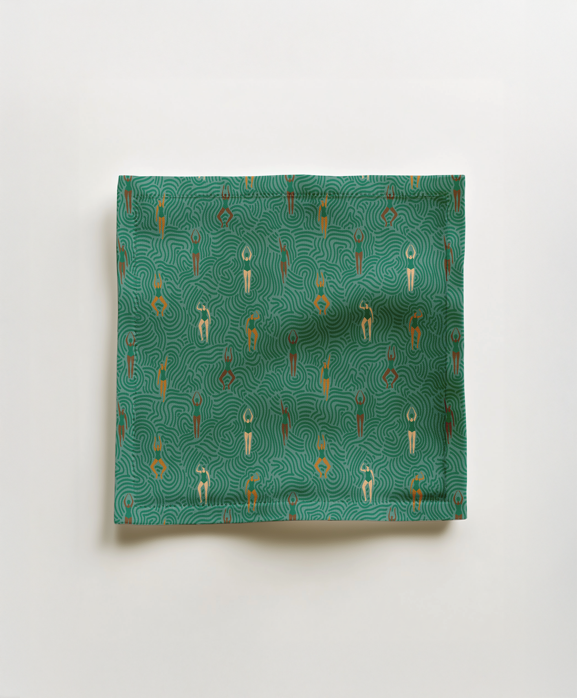 Swimmers in Summer in Butterfly Green Cocktail Napkin in Lightweight Linen