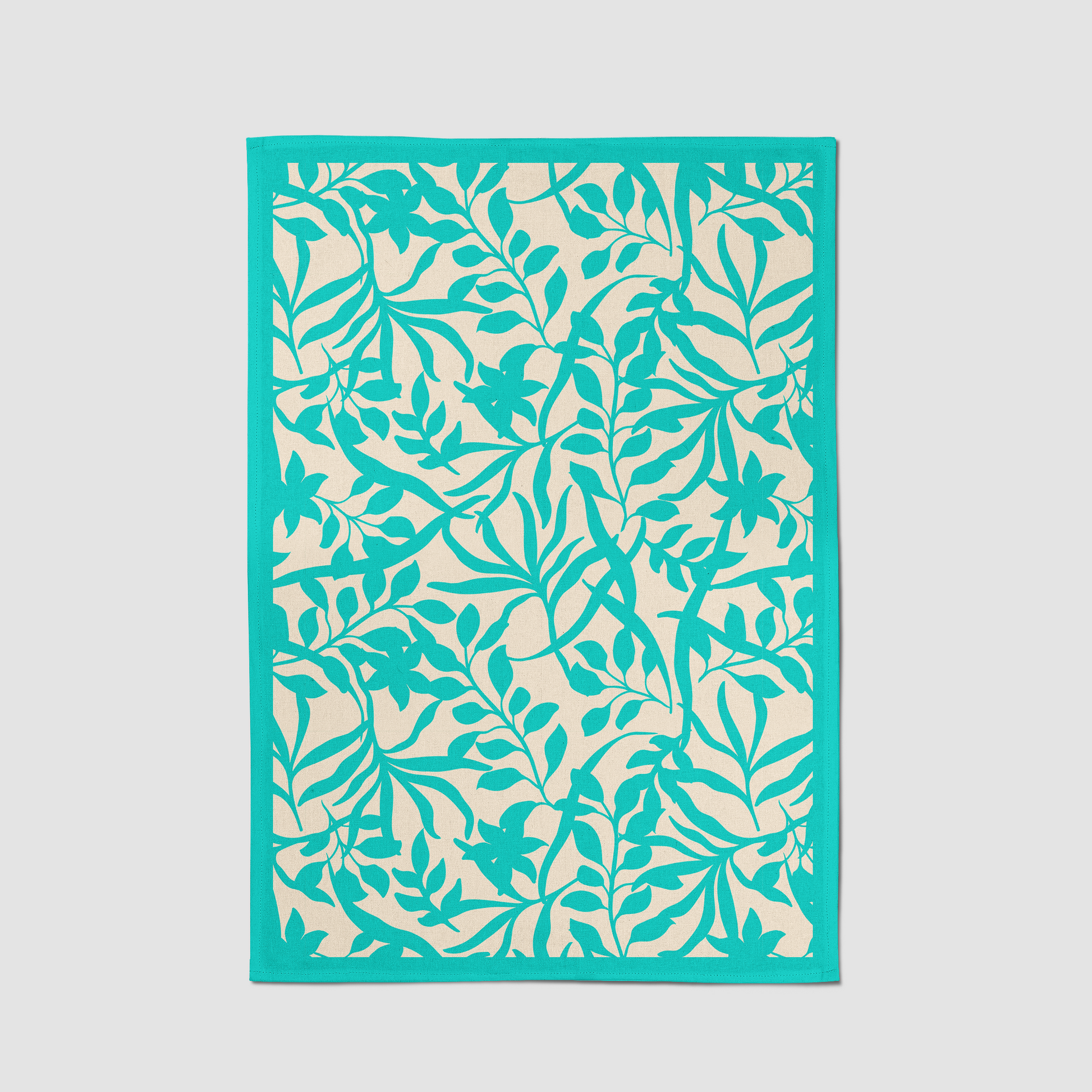 Figi Floral Tea Towel in Blue - Mid Cotton Twill