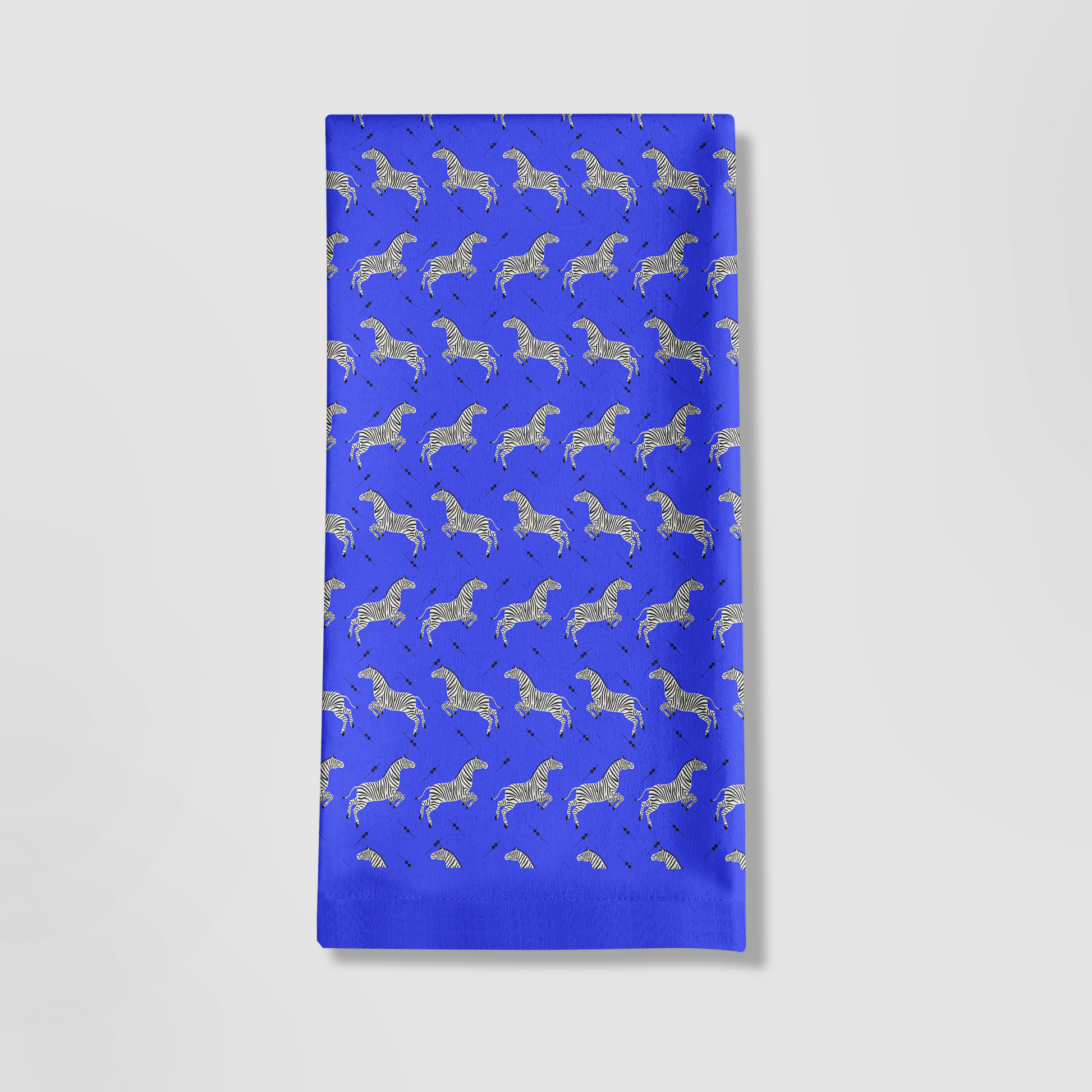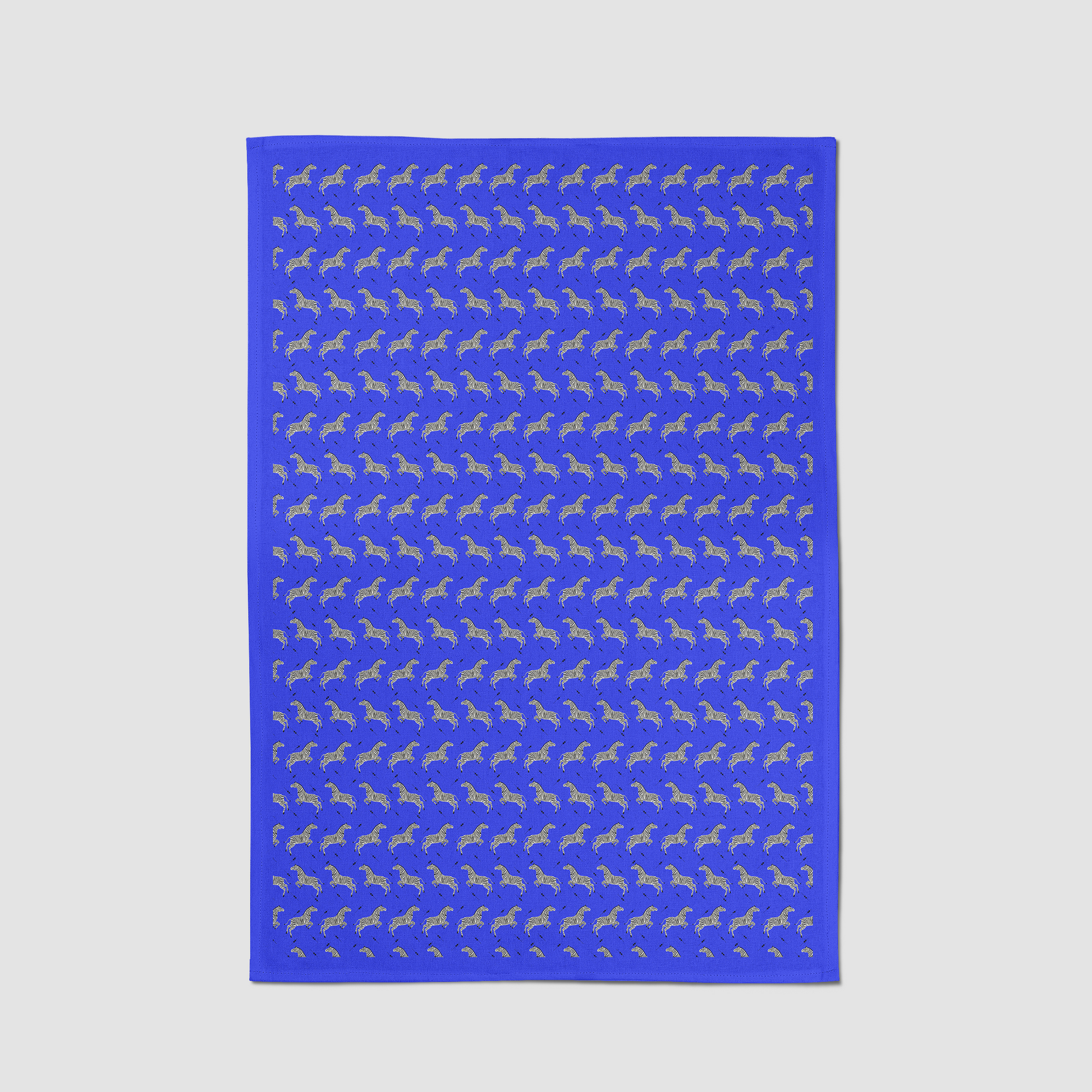 Leaping Zebras Tea Towel in Blue - Mid Cotton Twill