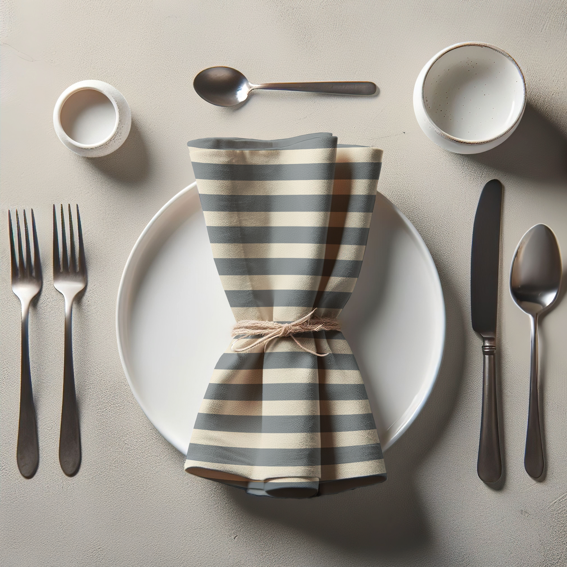 ONE Medium Stripes Napkin - Stone in Organic Cotton Voile