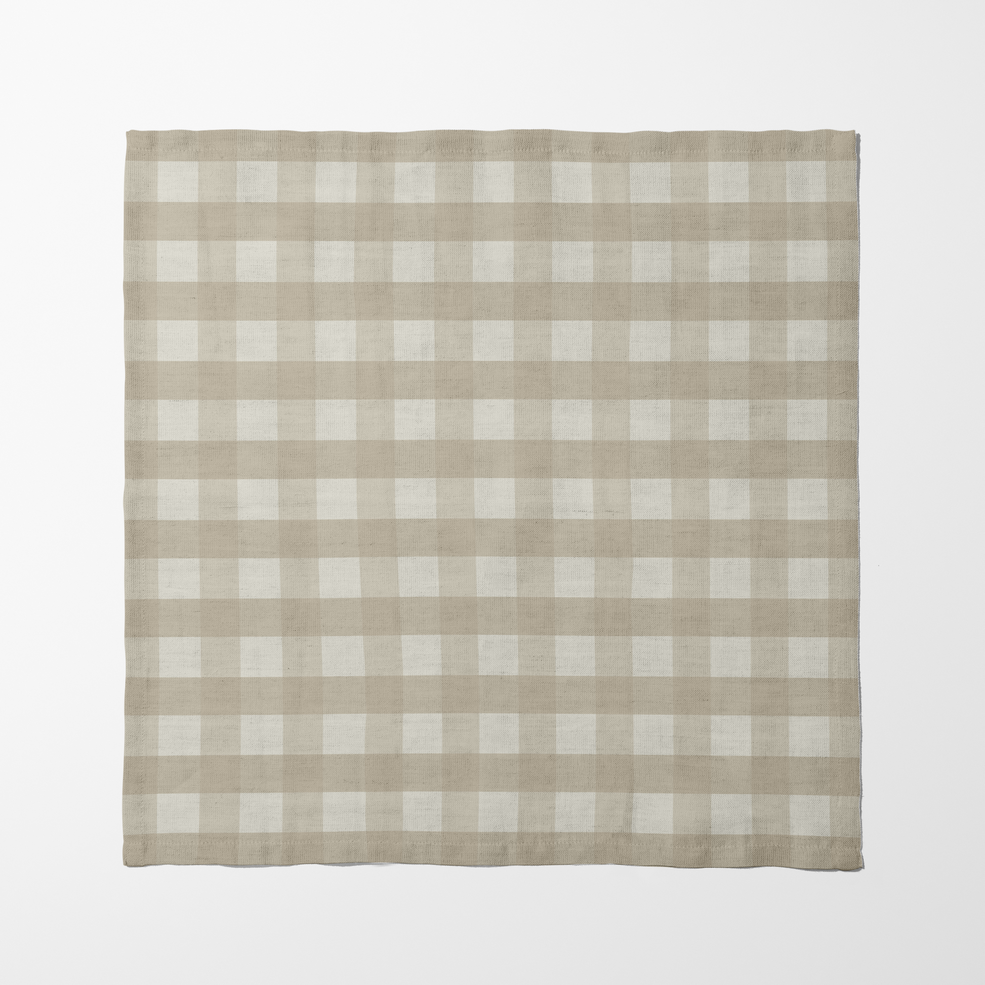 ONE Small Gingham Napkin - Pebble in Organic Cotton Voile