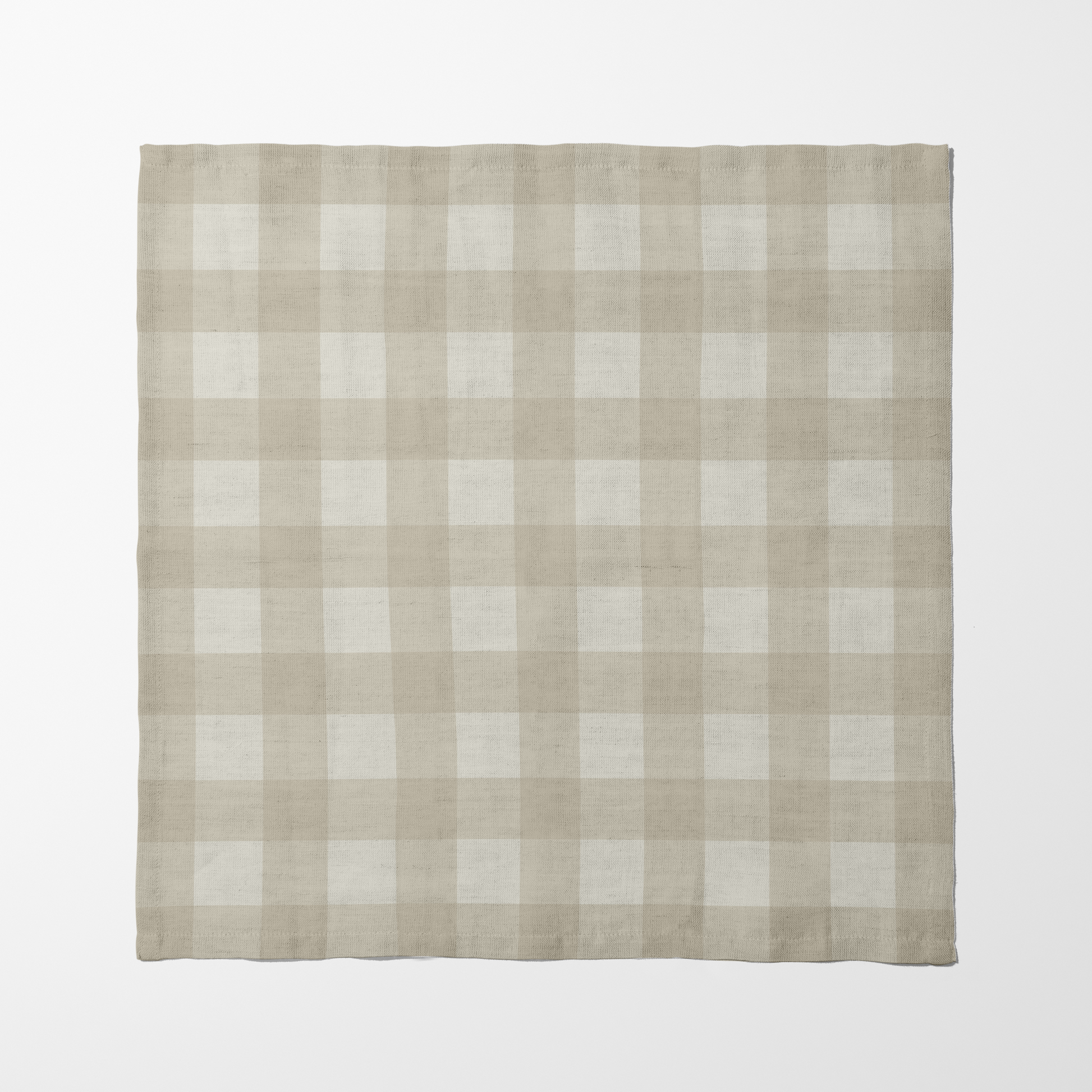 ONE Large Gingham Napkin - Pebble in Organic Cotton Voile