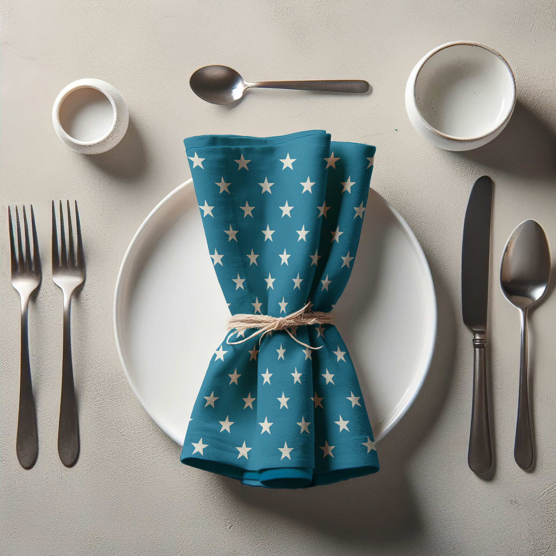ONE Stars Napkin - Cerulean in Organic Cotton Voile