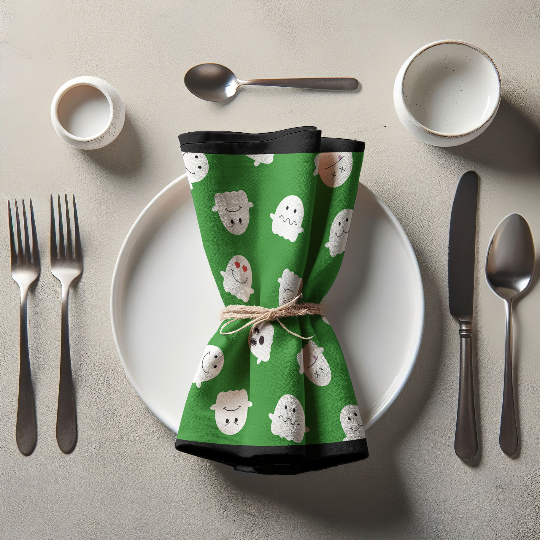 Friendly Ghosts in Slime Napkin in Lightweight Linen