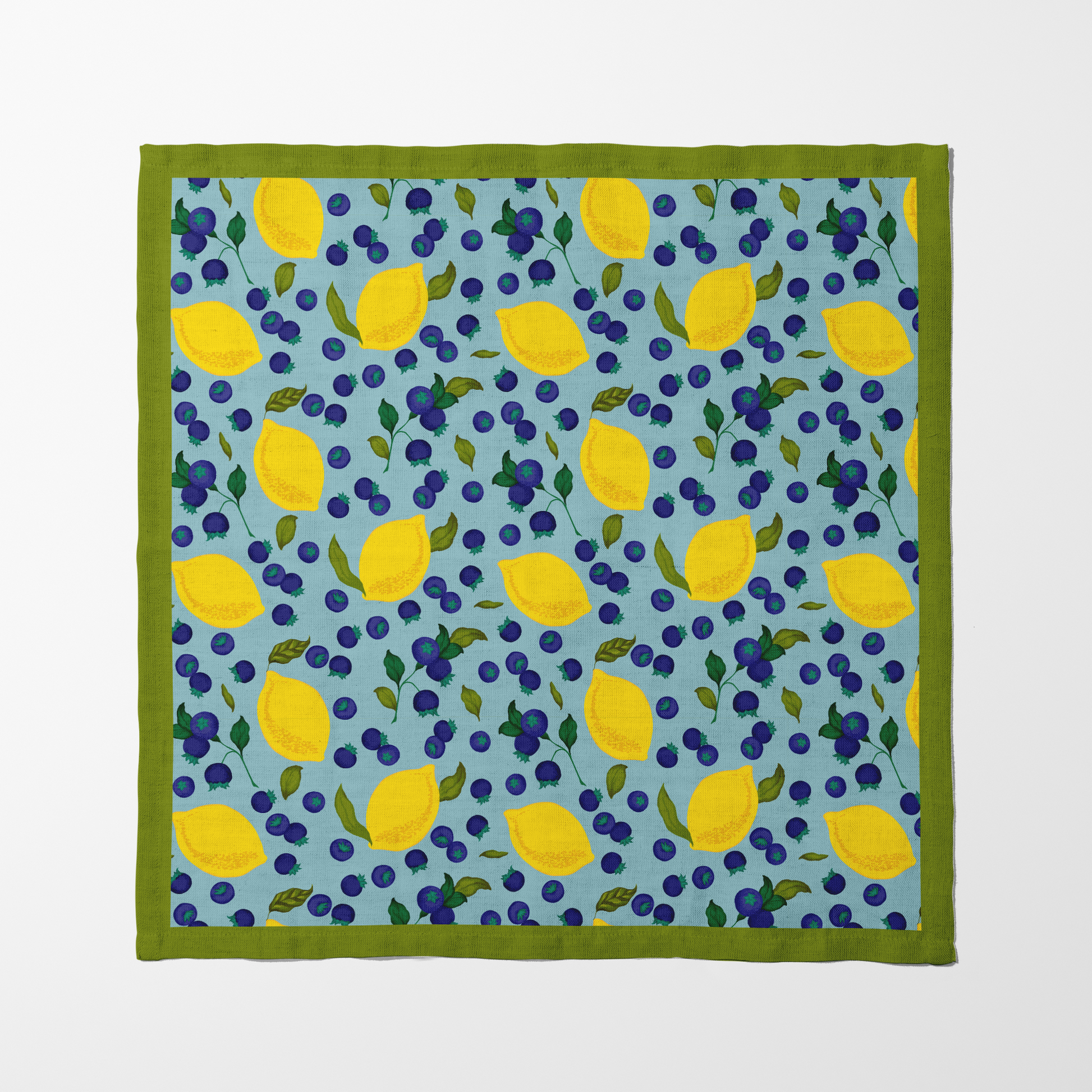Spring Lemons Napkin in Aqua in Organic Cotton Voile
