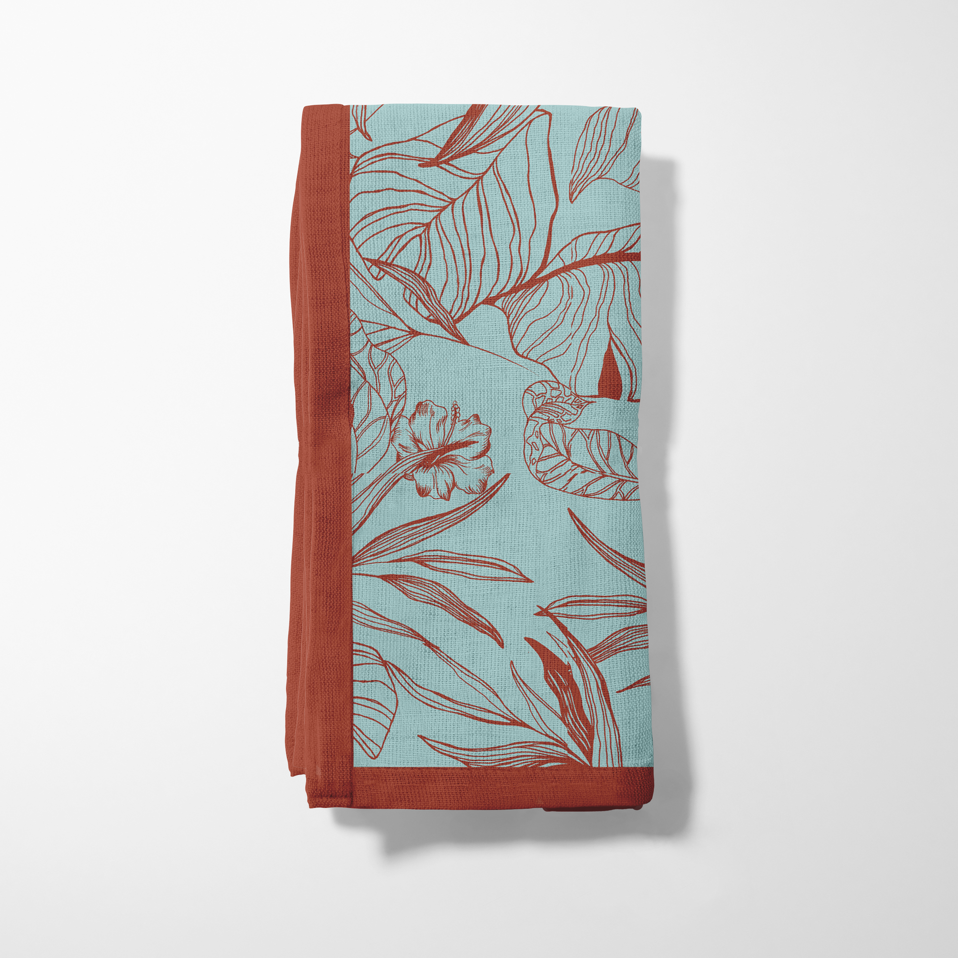 Mint Rust Palms Napkin in Organic Cotton Voile