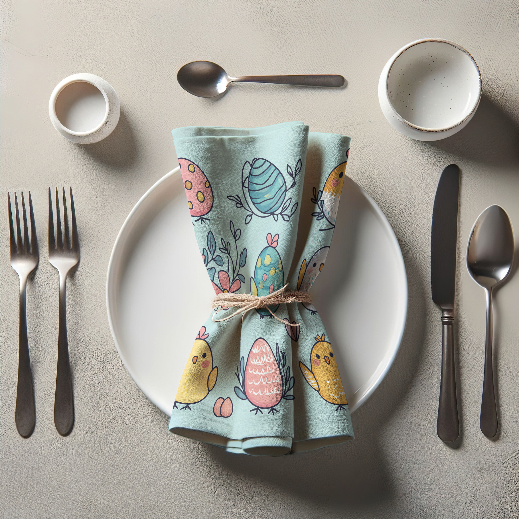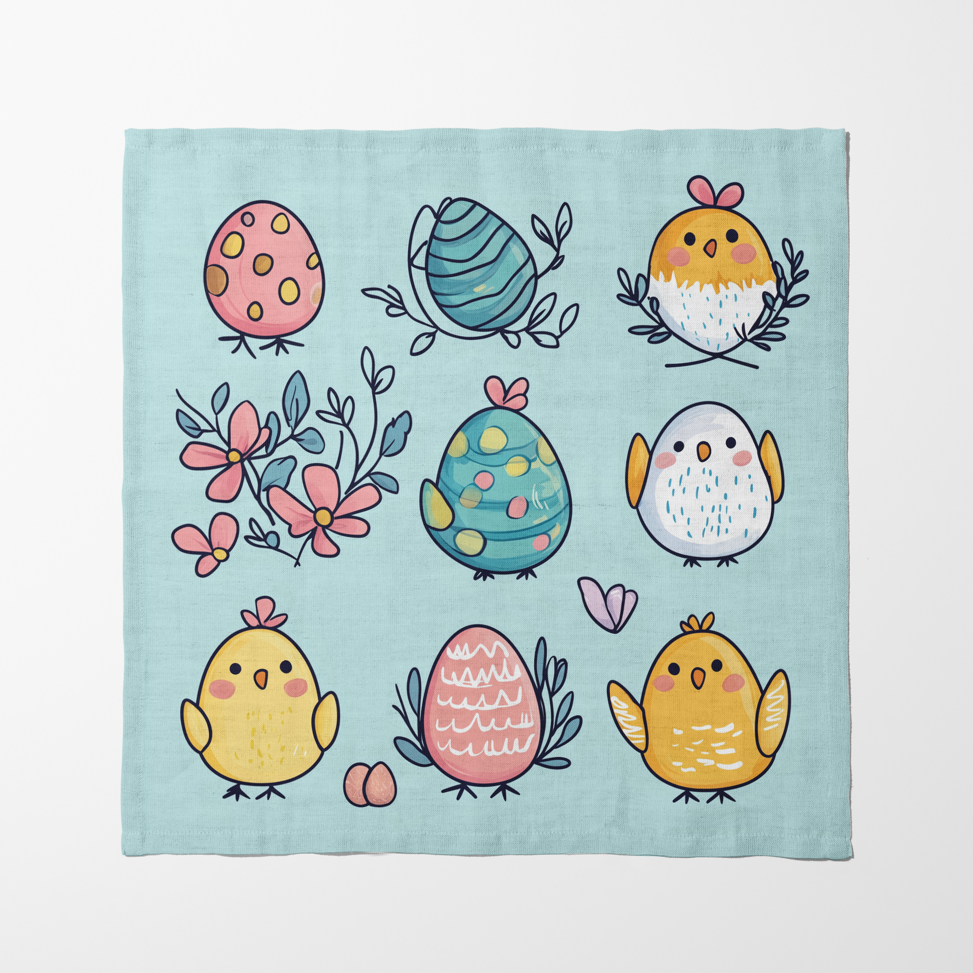 Pink, Yellow, Teal Chicks Napkin in Lightweight Linen
